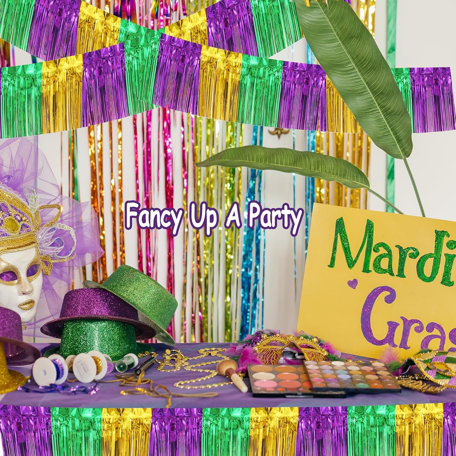 4 Pack 10 Feet Green Gold Purple Foil Fringe Garland Metallic Tinsel Streamers Banner Fringe Backdrop Banner for Parade Floats Mardi Gras Birthday Party Homecoming Decoration (Green Gold Purple)…