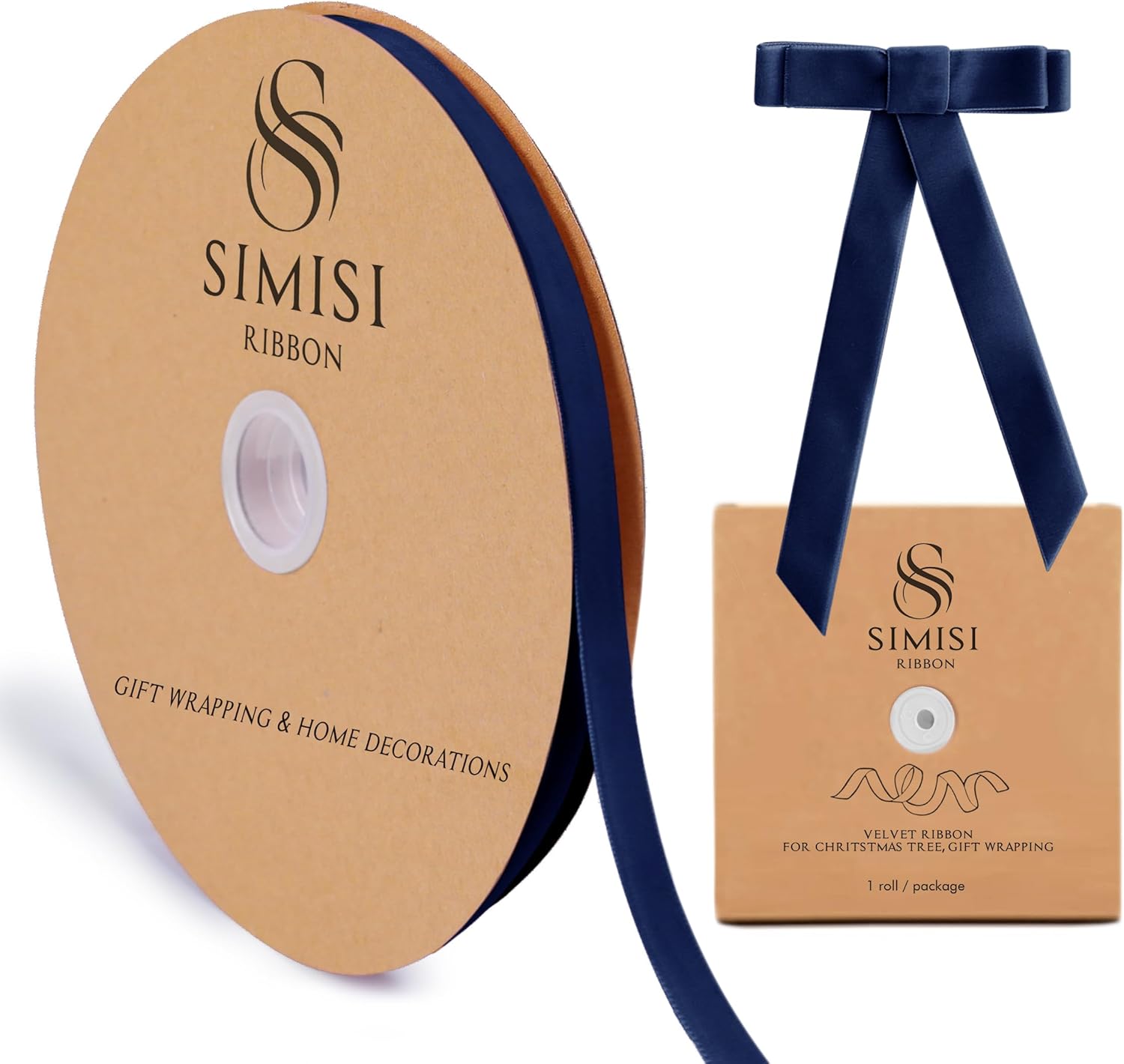 Navy Blue Velvet Ribbon 3/8'' 25 Yards for Christmas Tree, Gift Wrapping, Flower Bouquet, Wreath Decorations, Bow Making