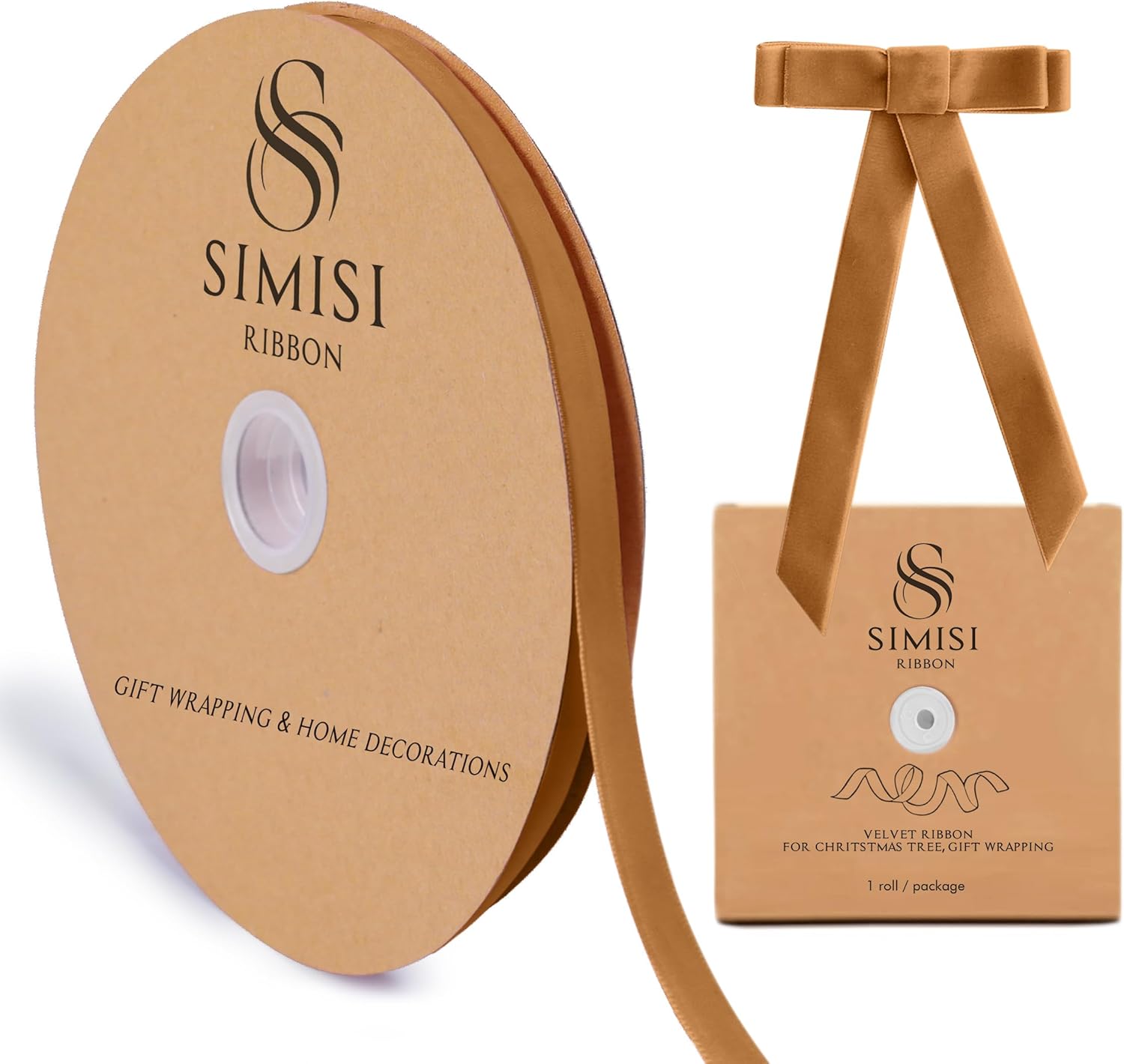 Copper Velvet Ribbon 3/8'' 25 Yards for Christmas Tree, Gift Wrapping, Flower Bouquet, Wreath Decorations, Bow Making