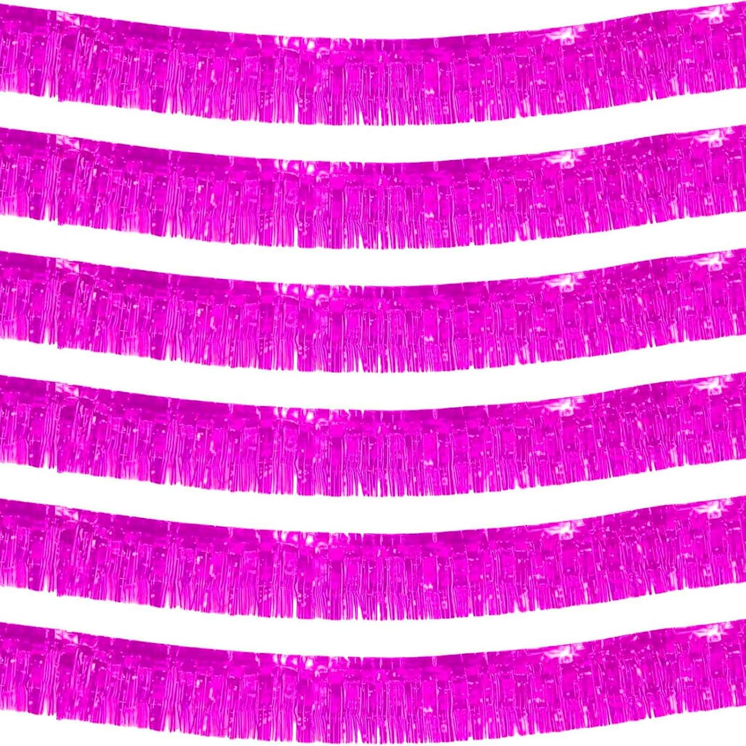 We Moment 6 Pack 10 Feet Hot Pink Foil Fringe Garland Streamers Metallic Tinsel Banner Wall Hanging Fringe Curtain Glitter Backdrop Banner for Parade Floats Birthday Bachelorette Pink Decorations