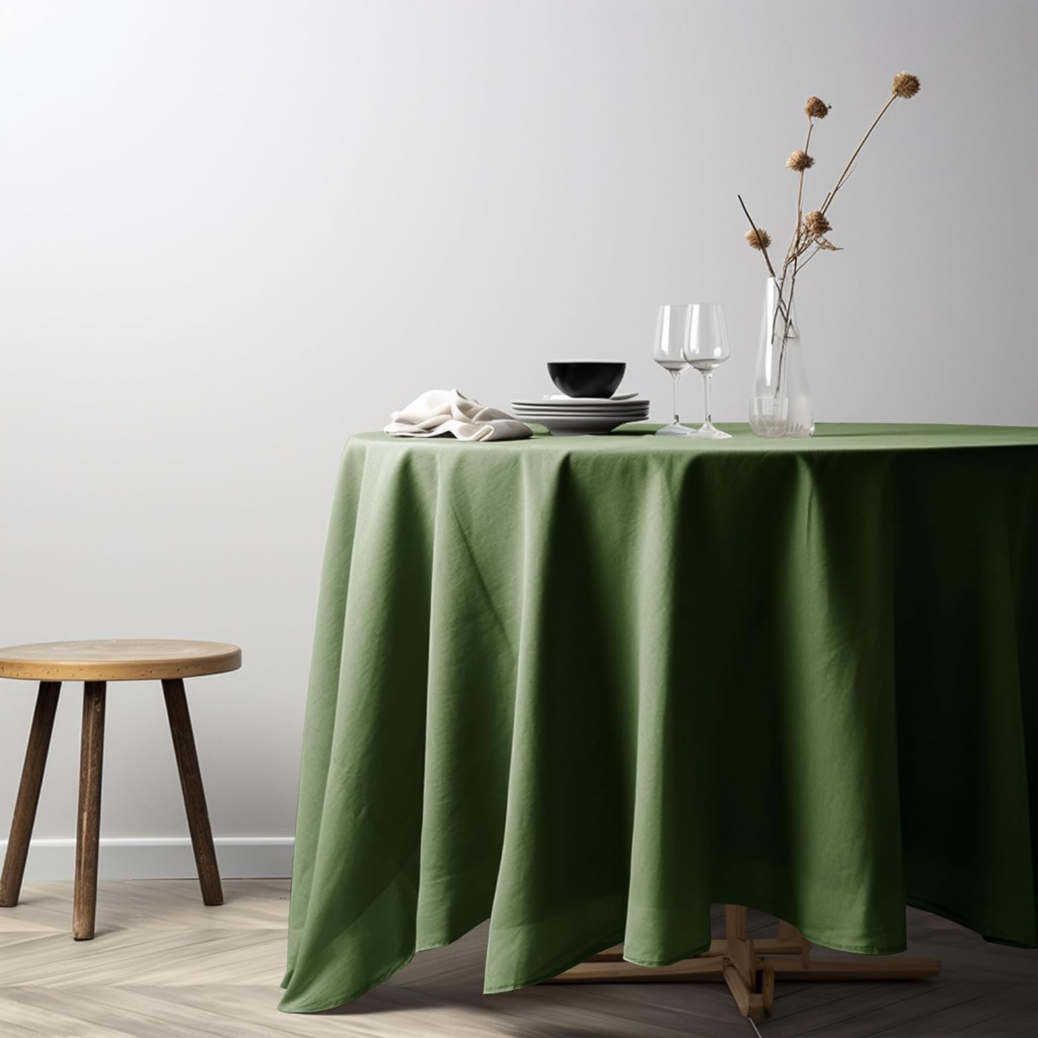 EVERLY 100% Pure Linen Round Tablecloths 80Inch Round Machine Washable Tablecloth for Thanksgiving,Decorative Halloween,Buffet Parties,Picnic,Events,Weddings and Restaurants-Olive Green