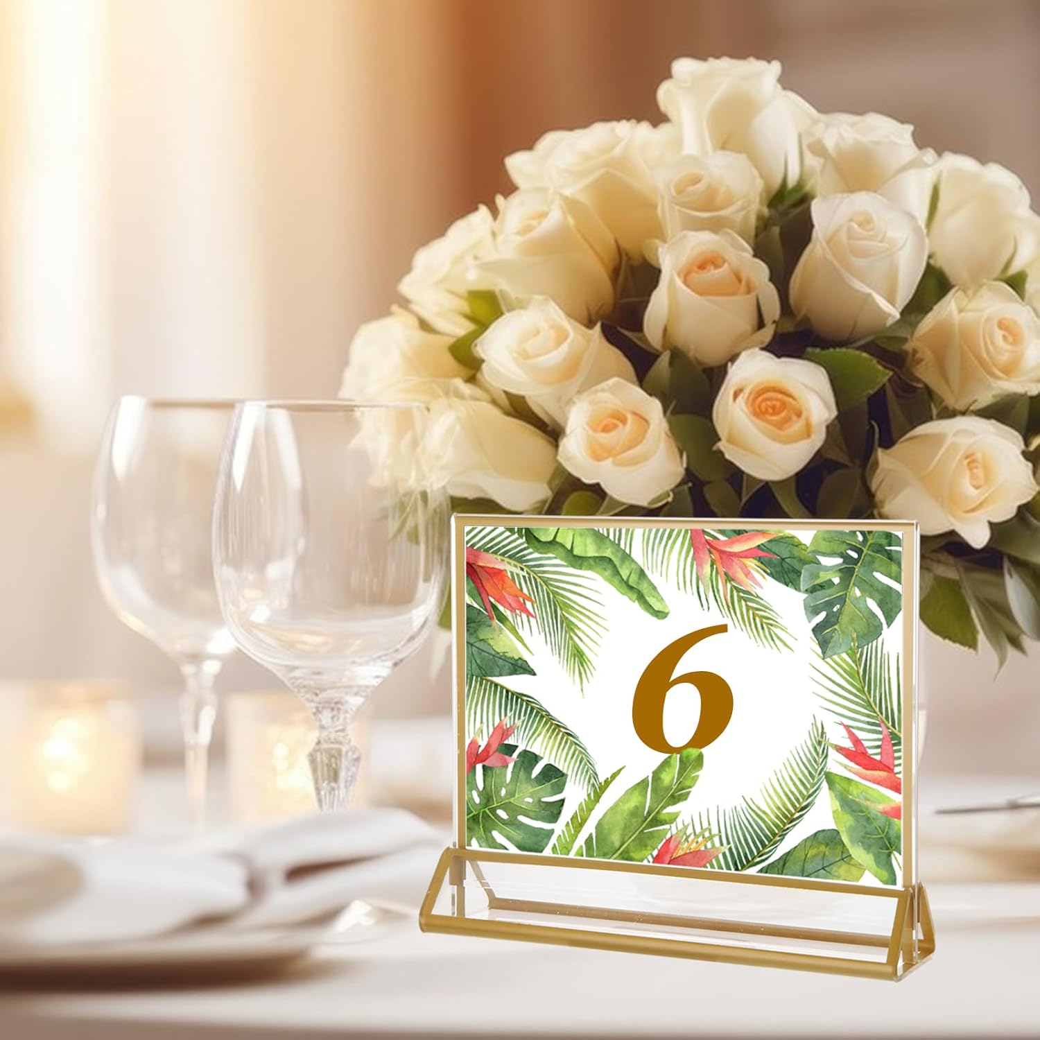 - 【WIDE APPLICATION】 Our wedding able number holder stands can safely stand on most tables, countertops or other surfaces and can be used as table number stands for bridal parties, banquets, dinners, parties or any other event, as the centerpiece of the reception table; it can also be used as a menu holder for restaurants, cafes and bars