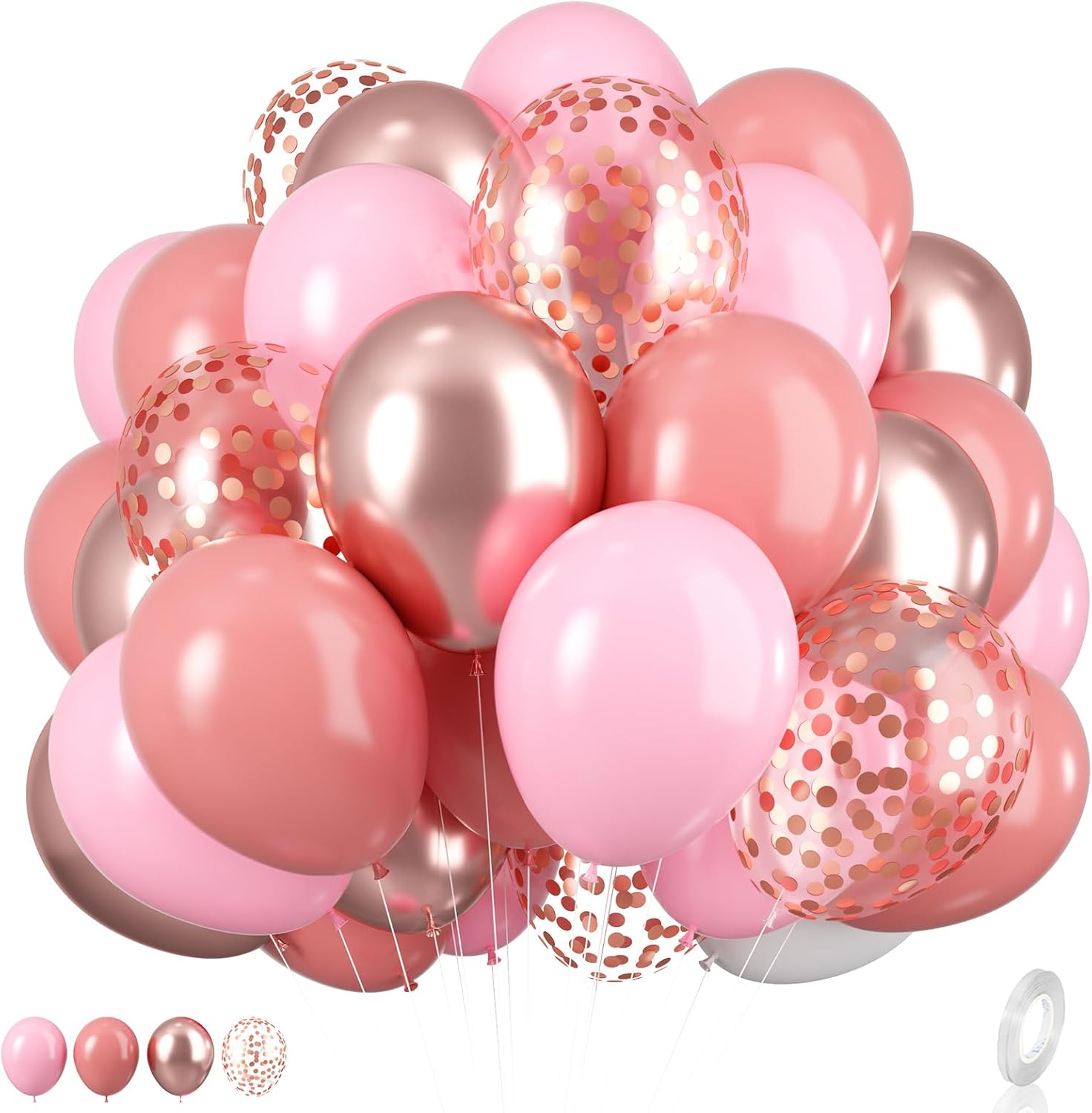 Rose Gold and Pink Balloons, Blush Pink Metallic Rose Gold Balloons Retro Pink Pastel Pink Rose Gold Confetti Balloons For Girls Birthday Party Boho Wedding Anniversary Party Decorations