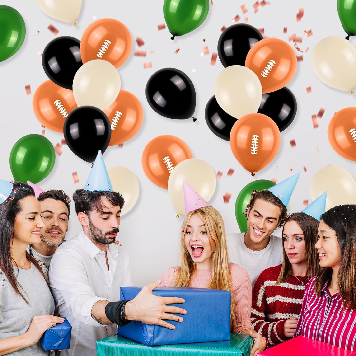 12 Inch Football Printed Party Balloons - Dark Green, Black, Beige - Boys Sports Birthday Party Decorations
