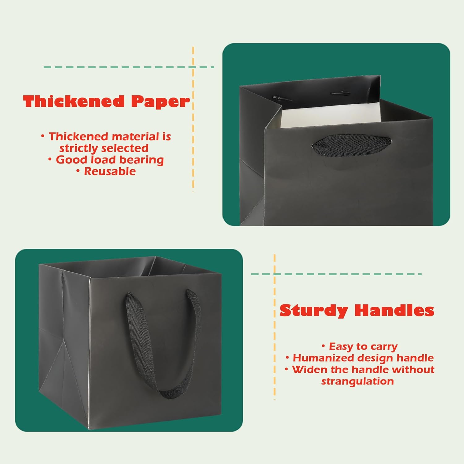 - [SATISFACTION GUARANTEED]: We are sure you will love our resuable square paper bags. If there is any dissatisfaction, we will help and try to solve it as soon as possible.