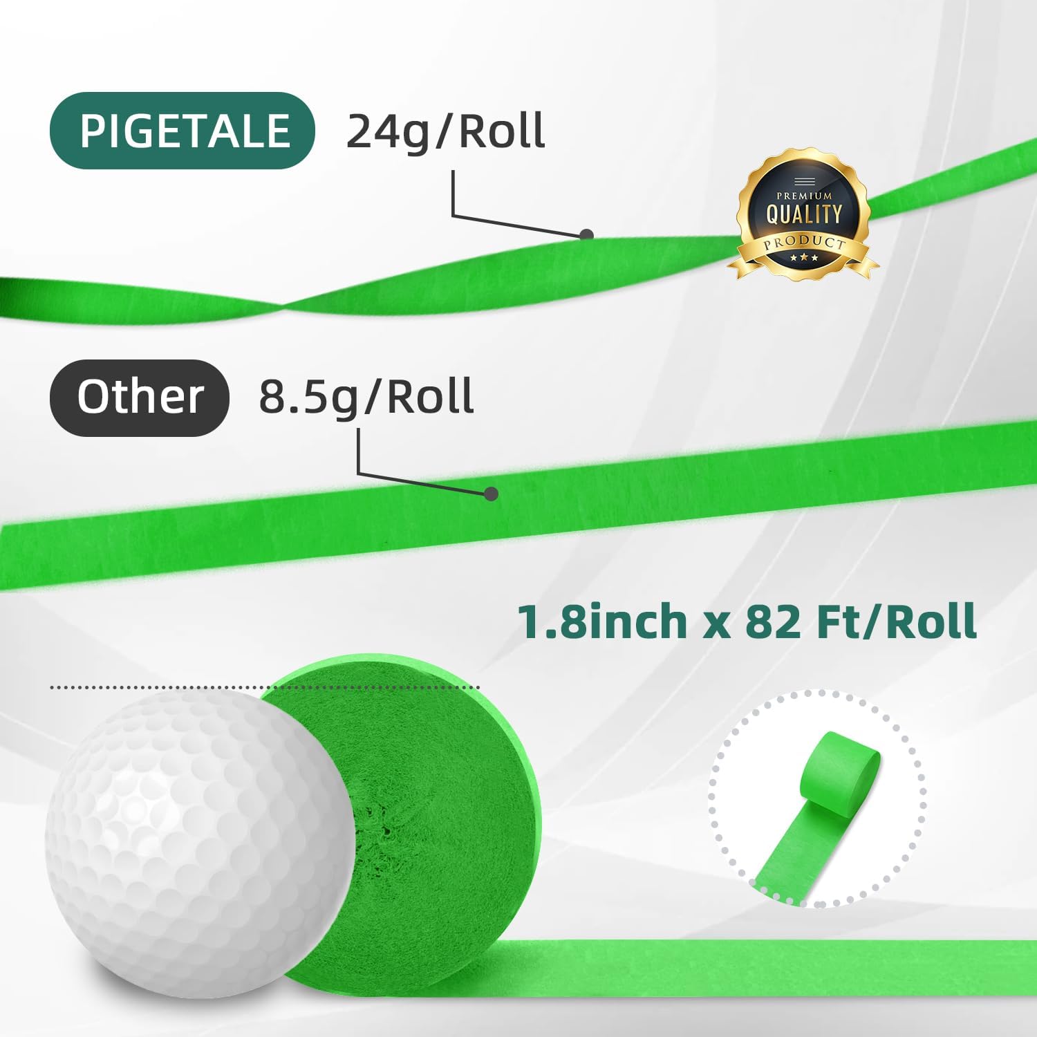 - 【Value Green Crepe Paper Roll Pack】Package includes green crepe papers (2 rolls), light green crepe paper (2 rolls), dark green (2 rolls), white streamers (2 rolls), 8 pieces in total. Each streamer measures about 1.8 inch/ 4.5 cm wide, 82 feet/ 25 m long, 219 yards in total, enough length for you to use, no need for cutting and splicing. These inexpensive green streamers birthday decorations come in rolls for a convenient experience and can be mixed and matched for an endless variety of colors.
