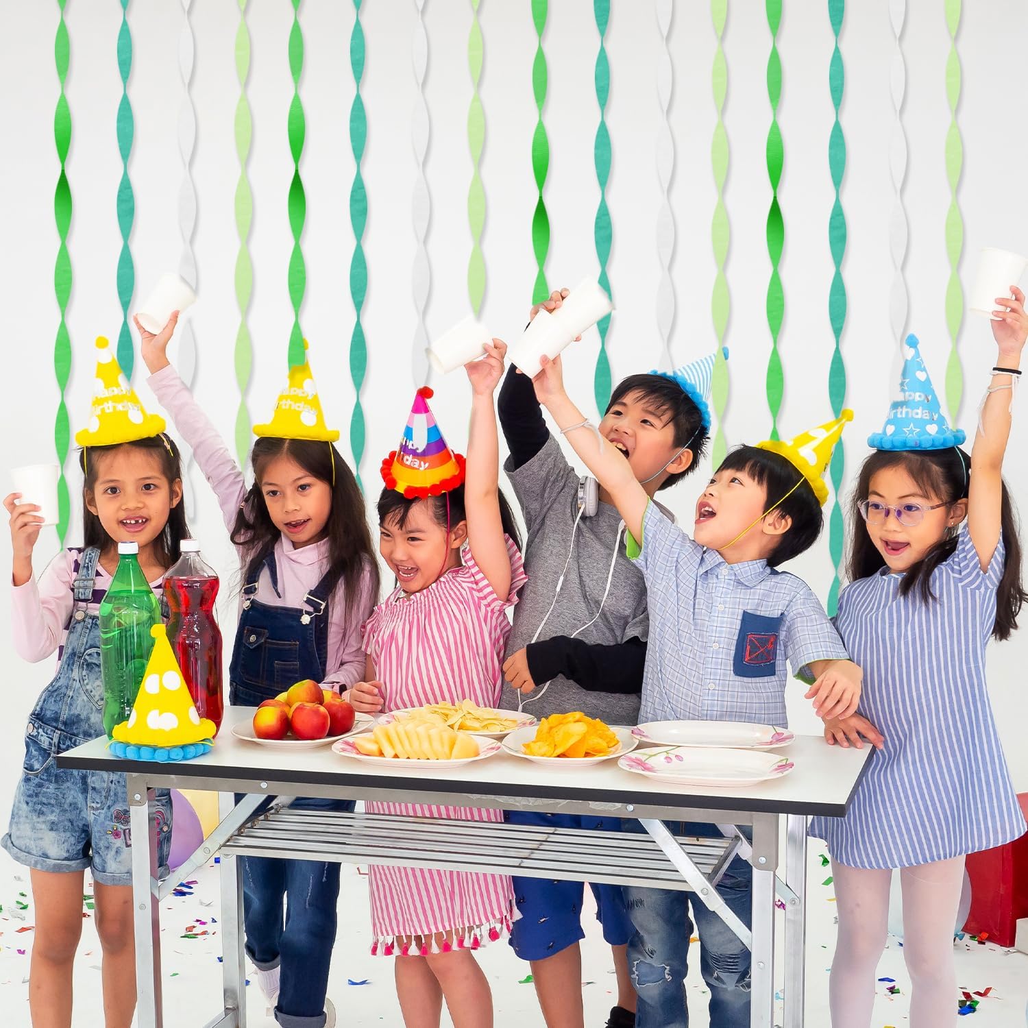- 【Multiple Applications】Crepe Paper Streamers are an all-purpose decoration for all types of events! Green and White Streamers are great for decorating tables, walls, door frames, and lots more. Green Streamers Party Decorations are suitable for birthday, bachelorette, graduation, Farewell, Disco, Tropical Jungle theme, school ball party, wedding, bridal baby shower garland decoration, party photo props, nursery christening, dinosaur parties, St. Patrick's Day, Arbor Day, Fiesta or Mexican party.