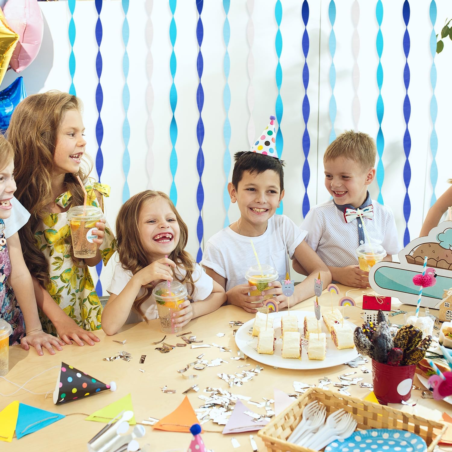 - 【EASY TO DECORATE】These Blue Streamers Birthday Decorations are neatly bundled and easy to untie. You can twist paper streamers together into spirals, DIY any craft project or use the crepe paper roll for backdrop, match different colors to give your celebration a customized look. These Light Blue and White Streamers are great for decorating tables, walls, door frames, and lots more. The Blue Skies Crepe Paper Streamers enable you to create interesting things for your family.