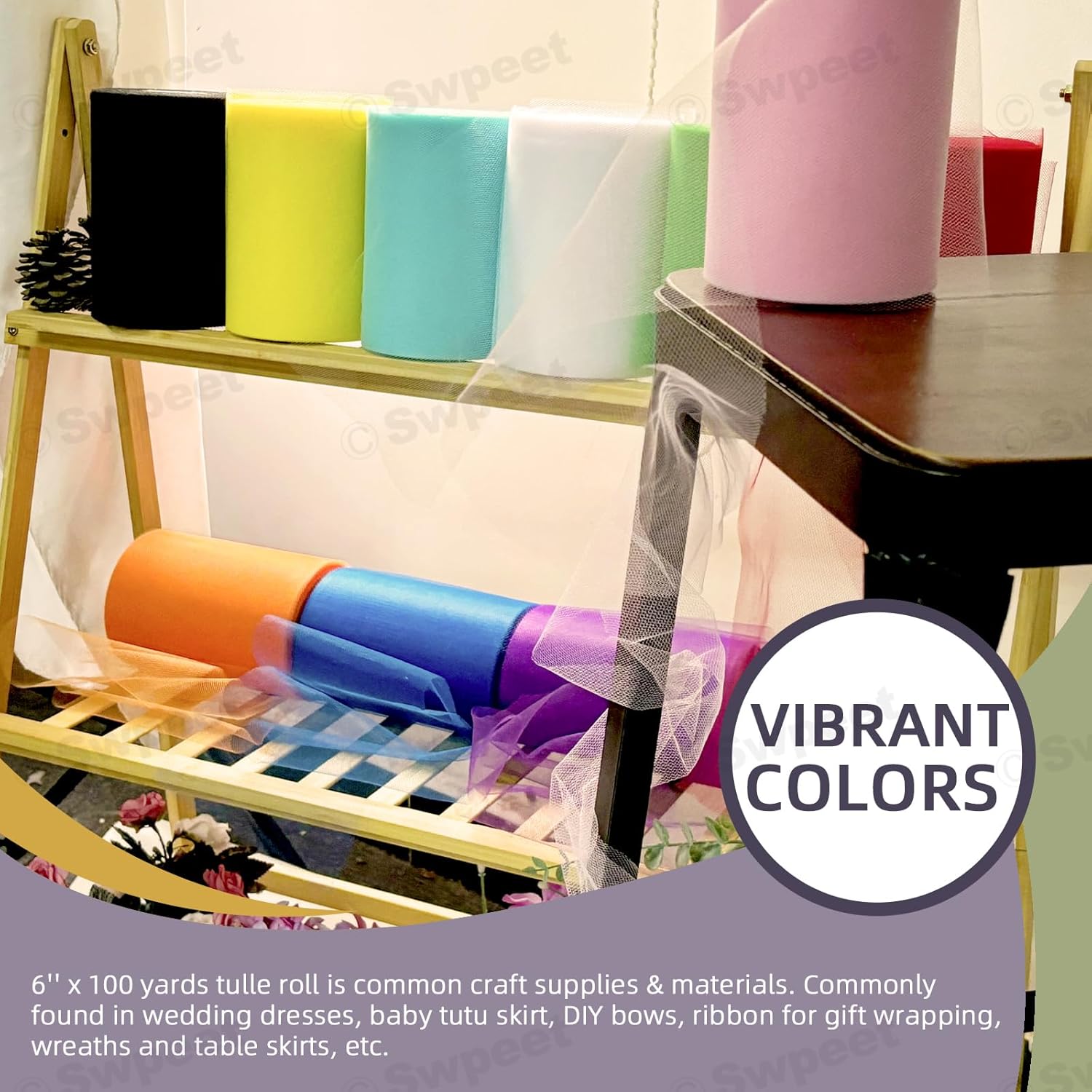 - 💥【Easy to Use】------ Each tulle fabric spool measures 6 inch x 100 yards, sufficient length, continuous and uninterrupted. The whole roll of tulle fabric has no splice marks and is easy to apply, just cut the length of sheer fabric you want to decorate.