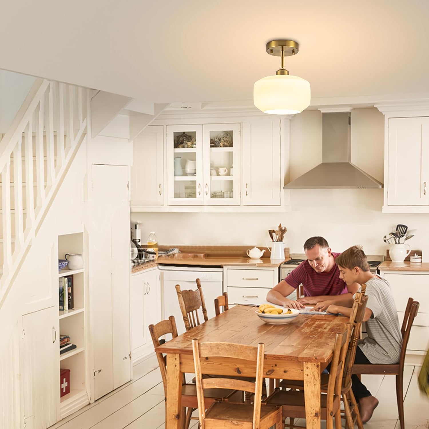 Tbaoinal semi Flush Mount Ceiling Light Fixture Adjustable Hanging Brass Gold Light Fixture 8.66" Modern Frosted Opal Milk Glass Shade Sloped Ceiling Adaptable for Hallway Light fixtures Entryway