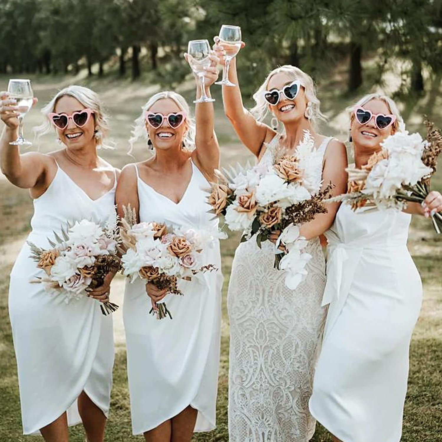 - [Photo-Ready Glam]: Capture unforgettable moments with our heart-embellished sunglasses. Ideal for wedding showers and bachelor parties, these cute sunglasses add a stylish touch to your photos and enhance the celebration.