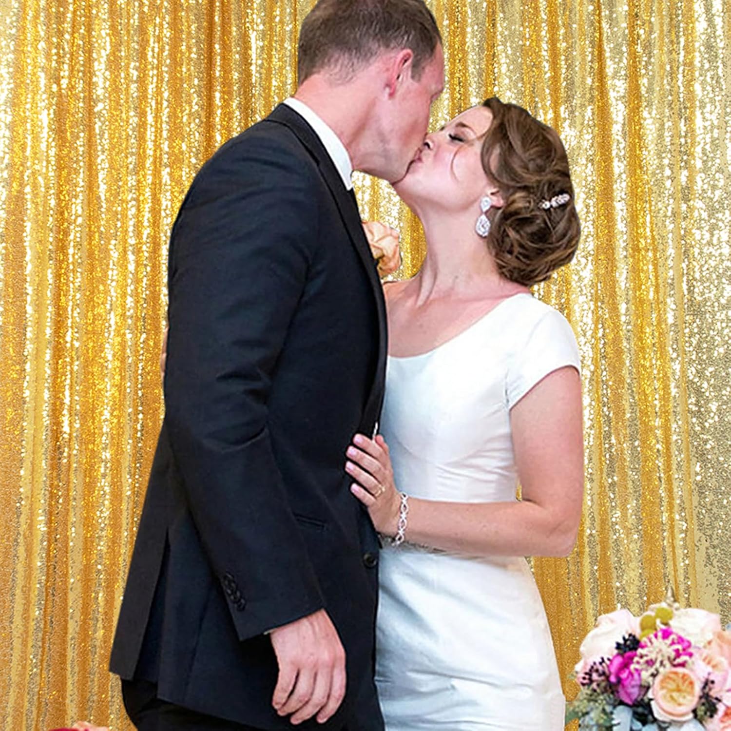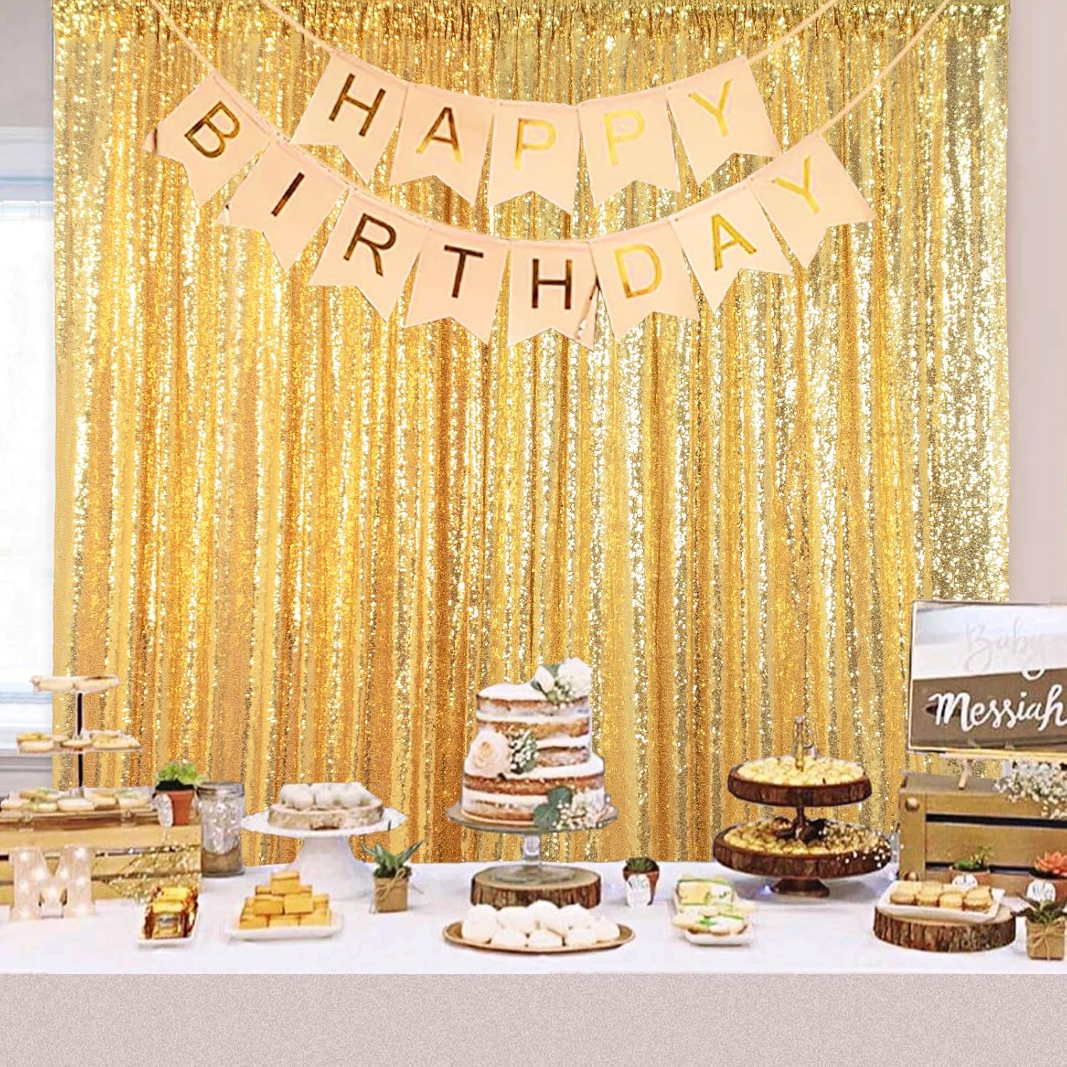 - β Gold Sequin Backdrop Sequin Curtain Panels : 4 PC 4FTx10FT Long Sequin Curtain Gold Height Fabric Wedding Backdrop.