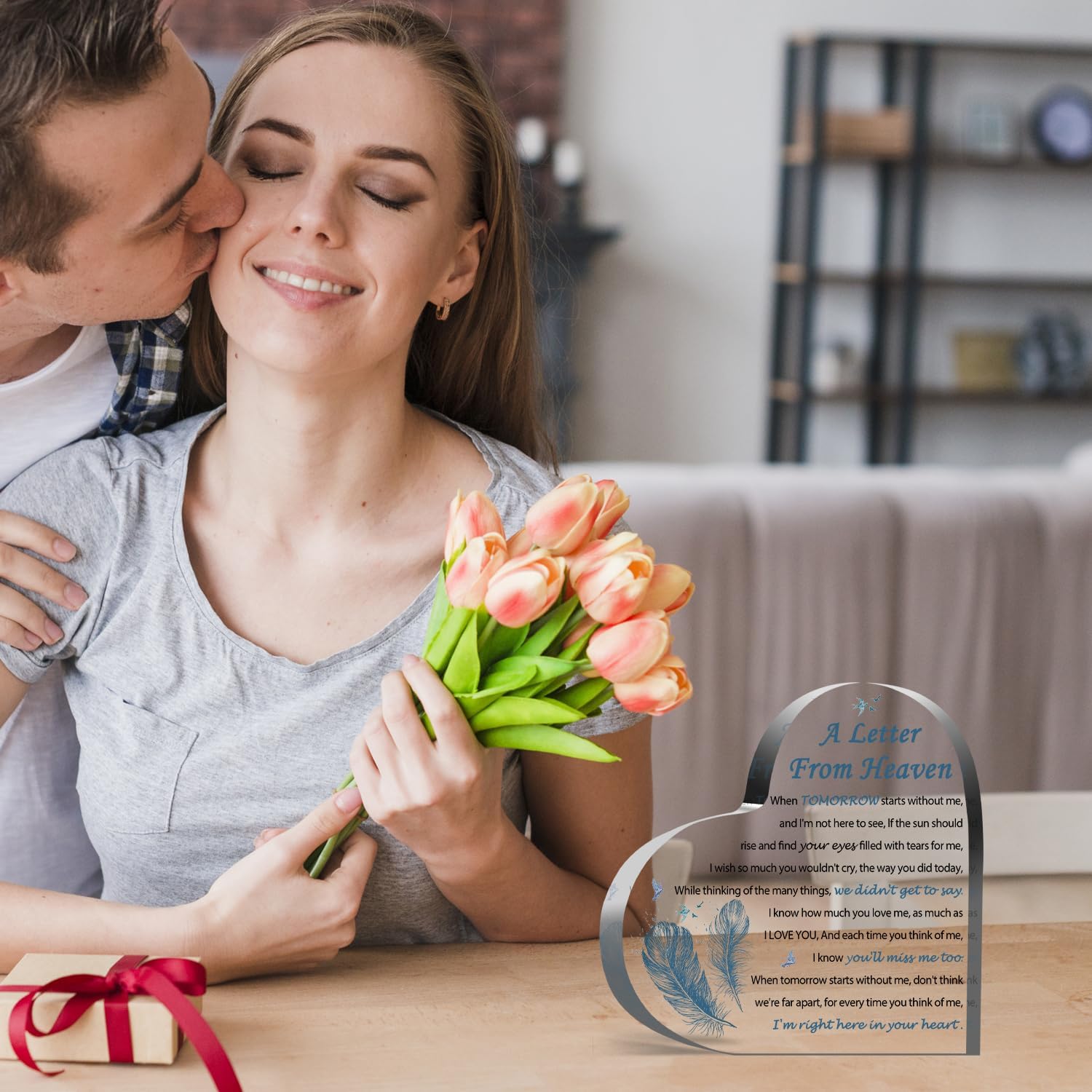 Sympathy Gifts - A Letter from Heaven- Memorial Gift for Loss of Mother Father Husband Son, Acrylic Heart Keepsake,Remembrance Sympathy Gifts (Feather)