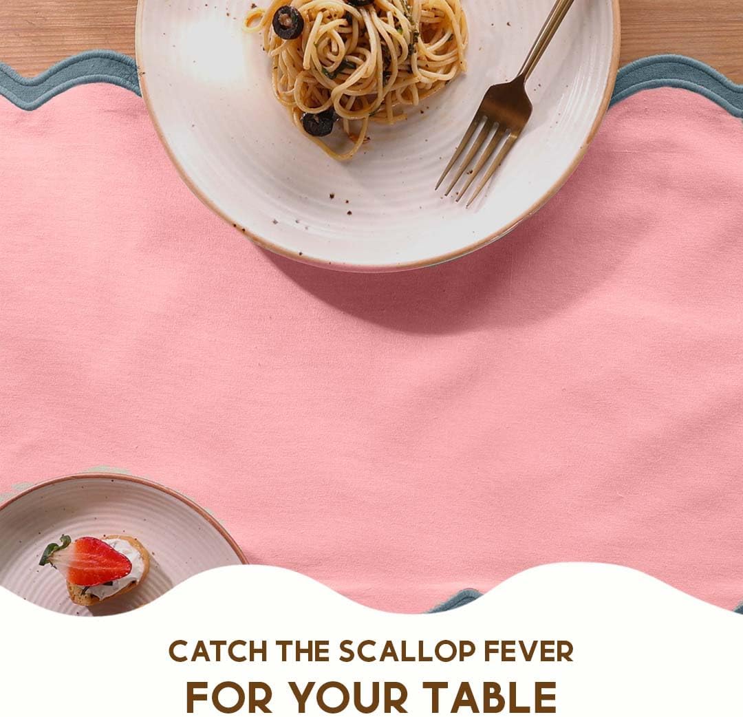 - MUST-HAVE: This dining table runner is also the perfect addition to your tablescape and even daily table setting. Get these scallop linens to give your home a stylish, chic and new look.