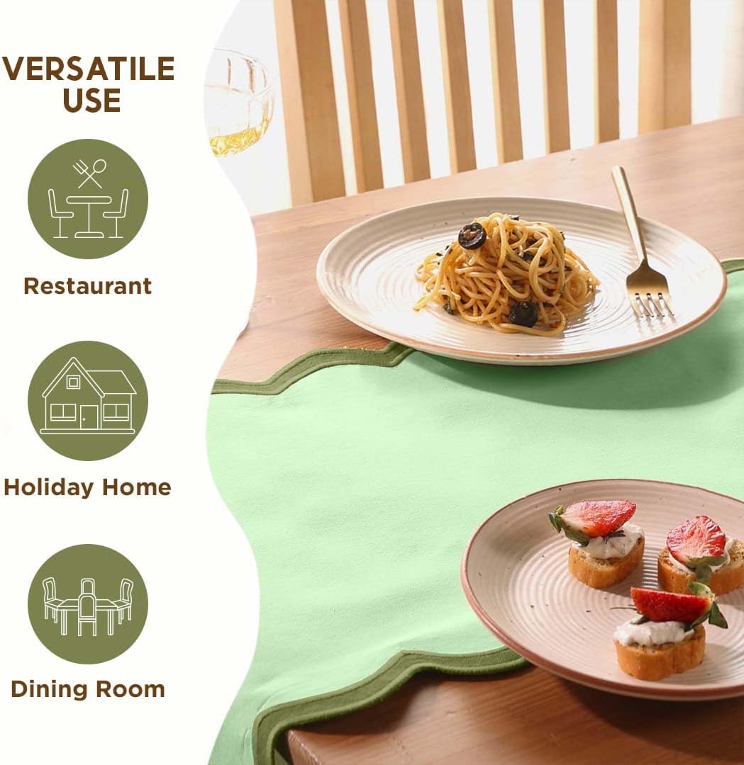 - PERFECT GIFT: The scallop linens or green table runner works as a lovely gift for those looking to celebrate birthdays of their loved ones or even their own. This table runner green is perfect to dress your birthday table up and spark some conversations.