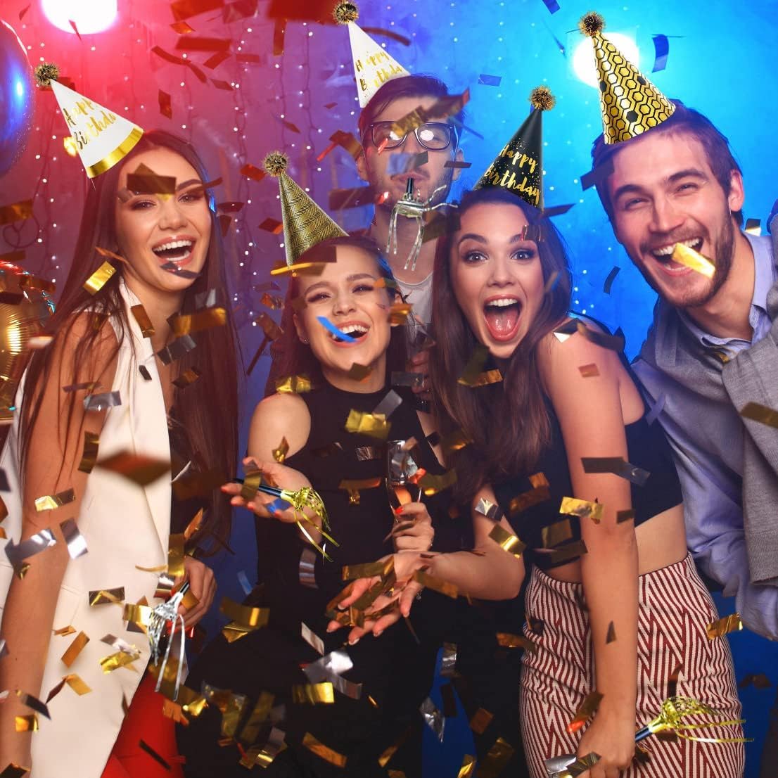34 Pcs Birthday Party Hats - Gold Cone Hats Including 12 Paper Hats and 22 Noise Makers