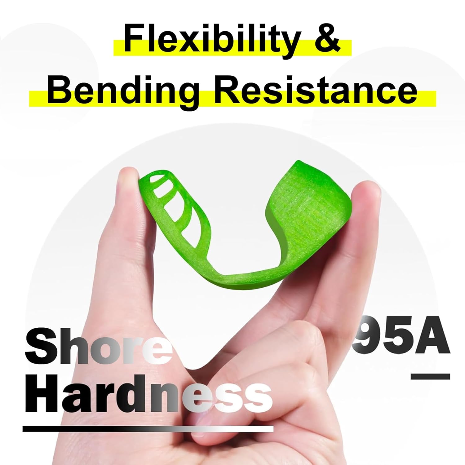 - 【95A High-Elasticity & Wear-Resistant TPU Material】: Crafted from premium thermoplastic polyurethane (TPU) with a Shore hardness of 95A±2, this filament balances exceptional elasticity and toughness. Prints easily withstand daily wear, impacts, and slight stretching/deformation—ideal for flexible applications like phone cases, insoles, watch bands, robotics parts, flexible toys, and more. Perfect for both creative designs and functional flexible components, blending softness with durability.