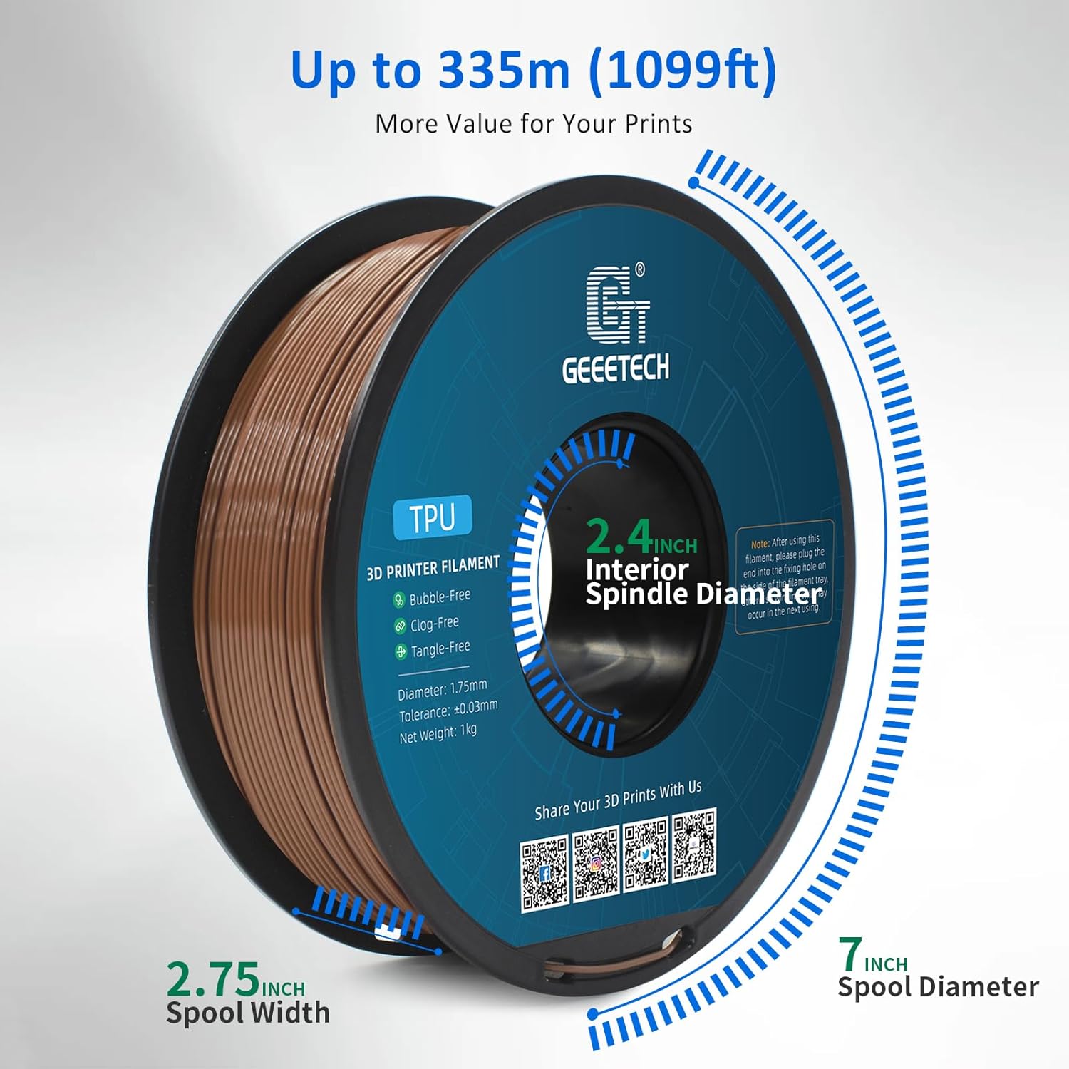 Geeetech TPU Filament 1.75mm, Shore 95A – Flexible 3D Printer Filament with High Elasticity, 1KG (2.2lbs) Spool, Dimensional Accuracy ±0.03mm, Fits Most FDM Printers (Brown)