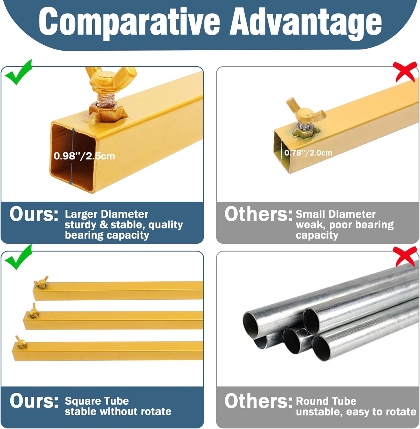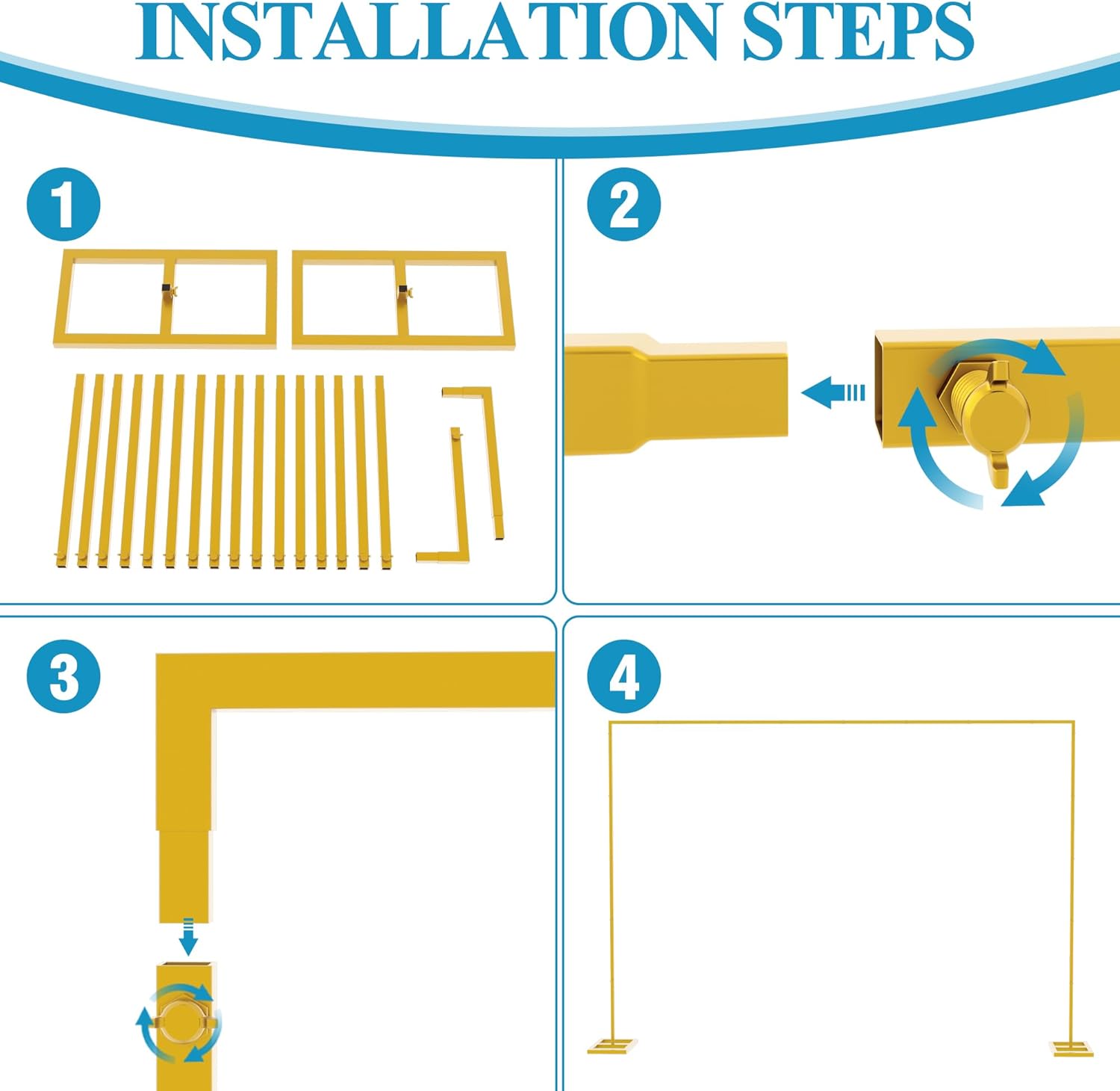 - 【Various Sizes Assemble】Pipe and drape backdrop kit measures 6.6ft /H* 10ft /W. The height and width of the adjustable backdrop stand and adjusted to maximum 6.6 x 10ft, so that you can get different sizes of backdrop frames based on your need, such us 6.6 x 6.2ft, 6.6 x 8.6ft, 6.6 x 7.5ft, 6.6 x 10ft, 8 x 6.2ft, 8 x 7.5ft (H*W)etc. Sturdy square pipe and drape kit frame can be used to create wedding backdrop stand, balloon floral gold backdrop stand or photography background.