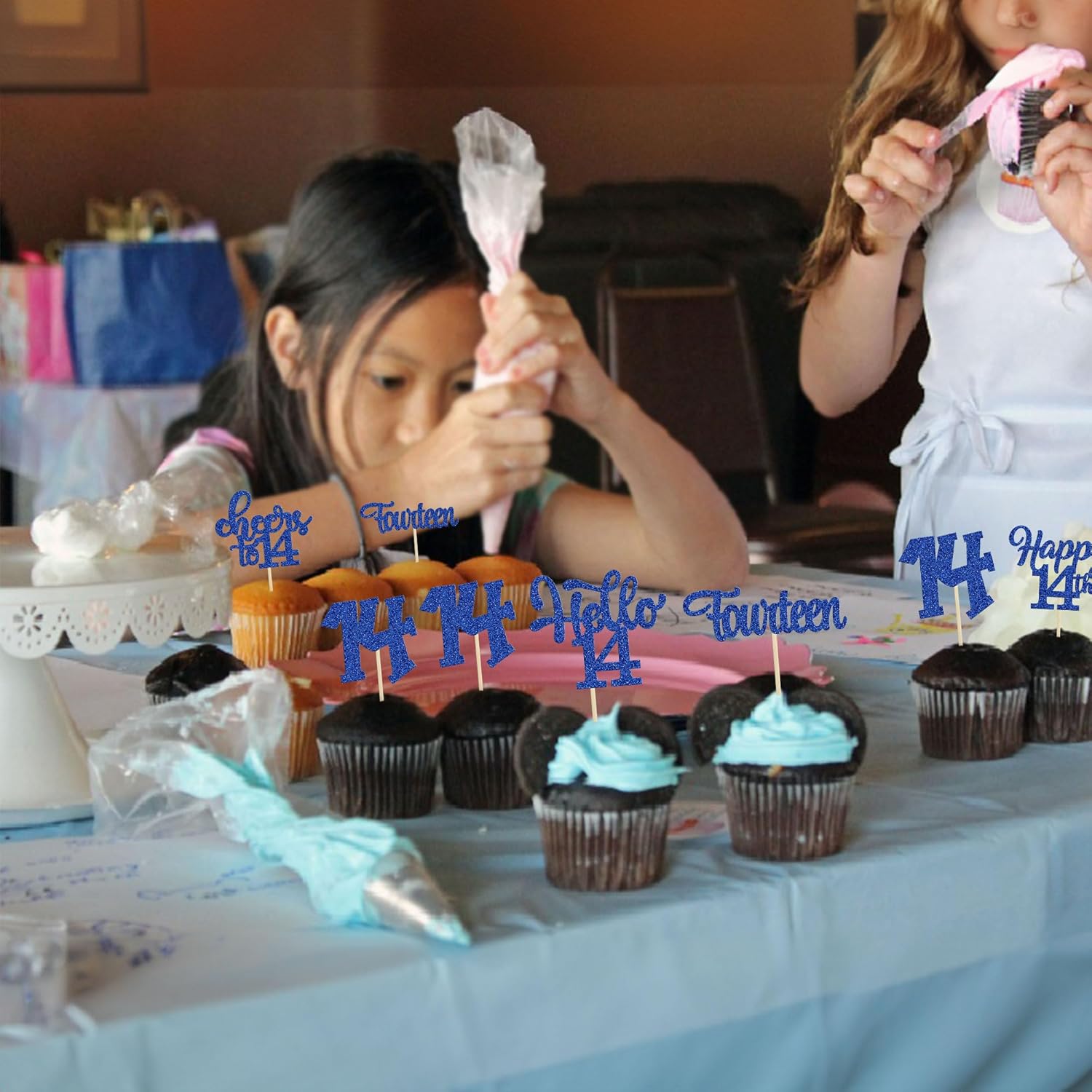 - -Package included: 24Pcs Happy 14th Birthday Cupcake Toppers. Comes with assembled, so you can insert into your cake directly, which make your cake more interesting.