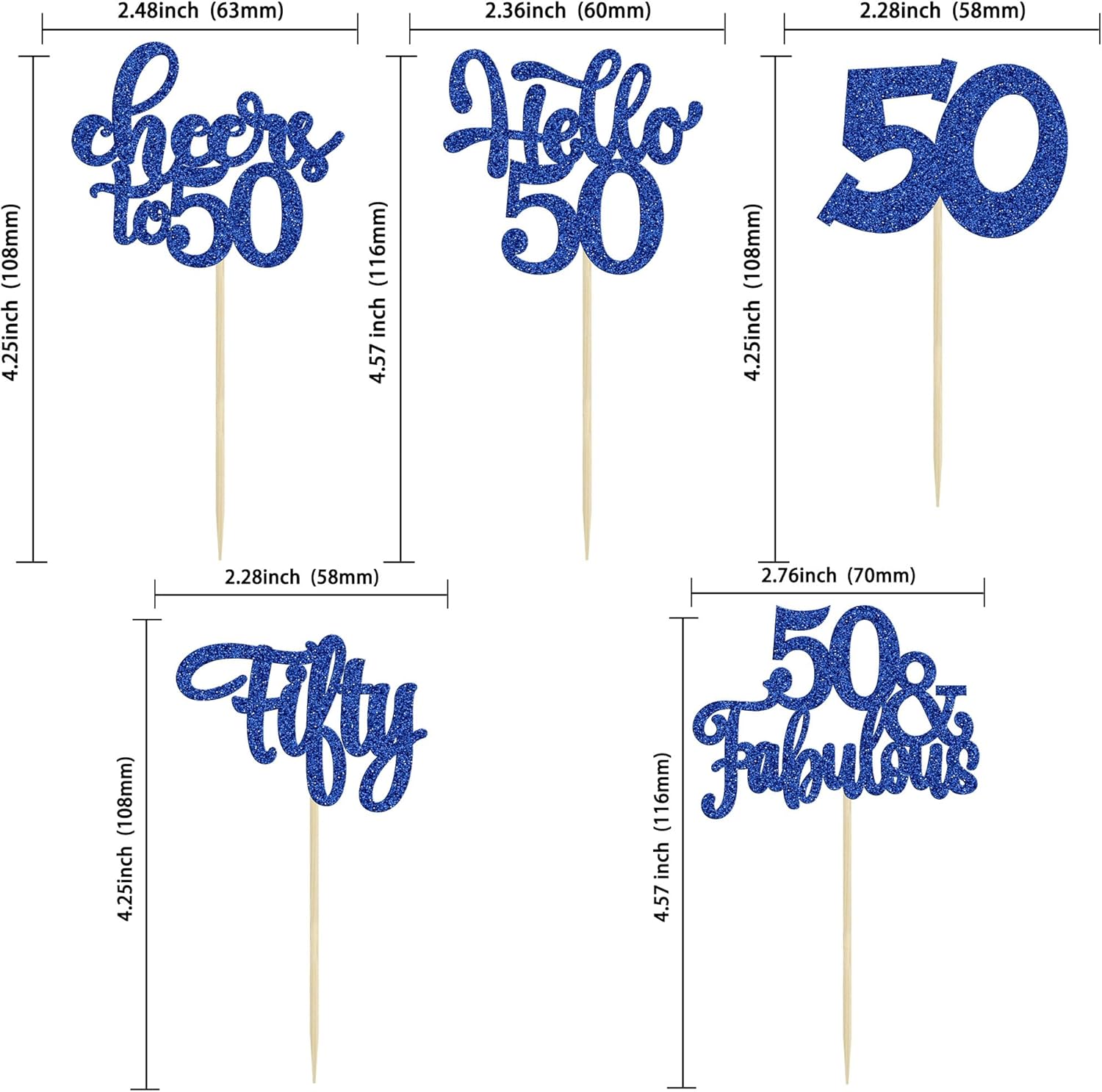 - -These Happy 50th Birthday Cupcake Toppers are so cute and good for happy 50th birthday theme party, cheers to 50 years theme party, 50 fabulous theme party, happy 50th birthday anniversary theme party cake decorations. They can make your cupcake more attractive and bring the fun to your party. You can also apply them for ice cream, fruits, cookies and other desserts.