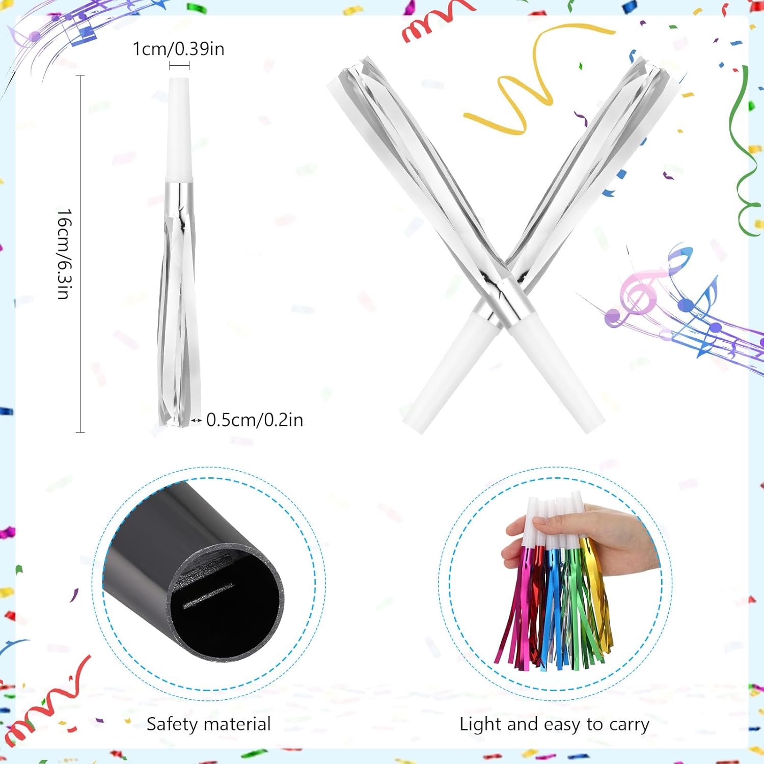 - Material: Glitter metallic fringed noise makers horns made of high-quality materials, safe, reliable and durable, not easy to break or fade, can be applied for a long time.