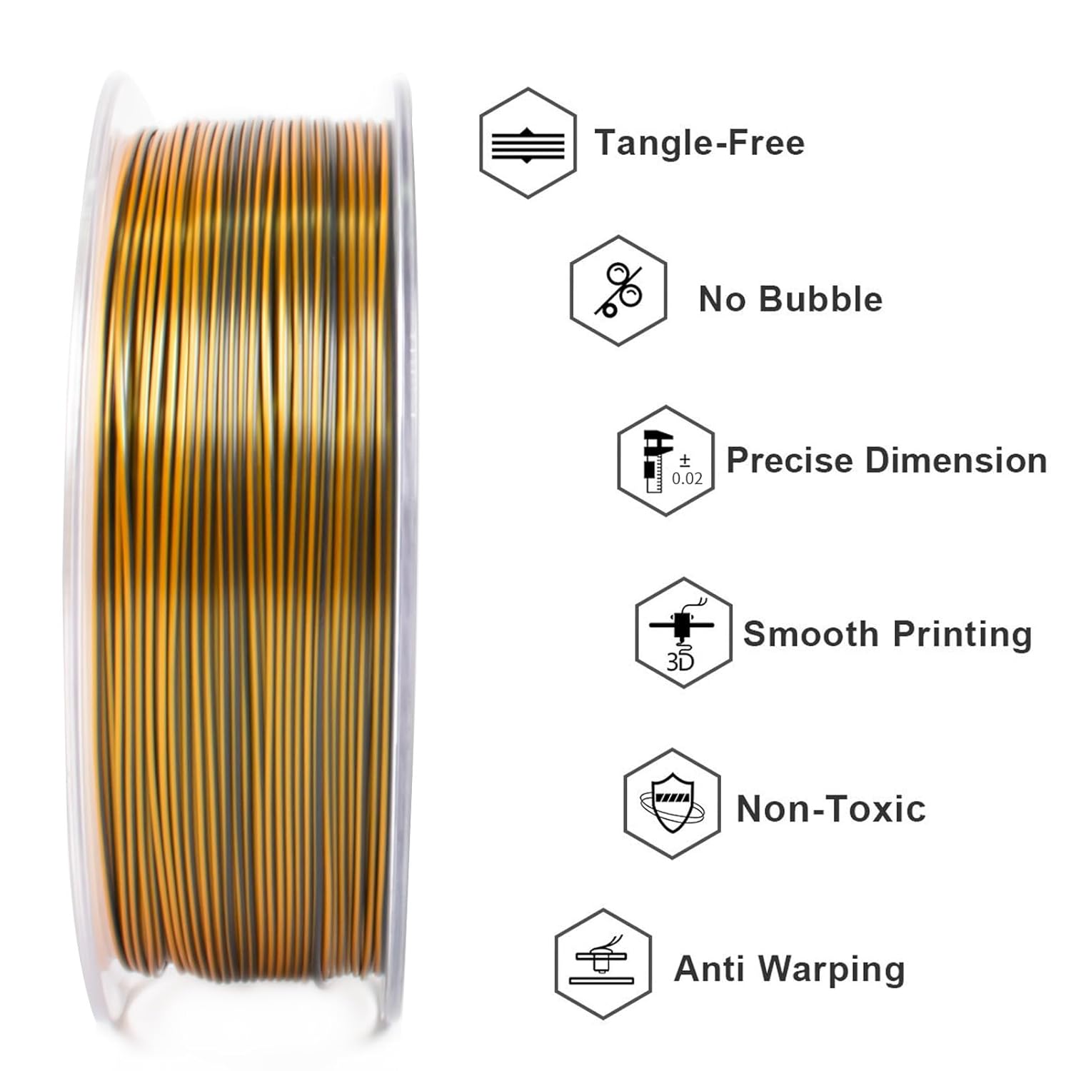 GIANTARM Silk PLA 3D Printer Filament, Tri-Color 3D Printing PLA Filament 1.75mm, Shiny Silk PLA, Dimensional Accuracy +/- 0.03 mm, 1kg/2.2lbs (Purple+Gold+Black)