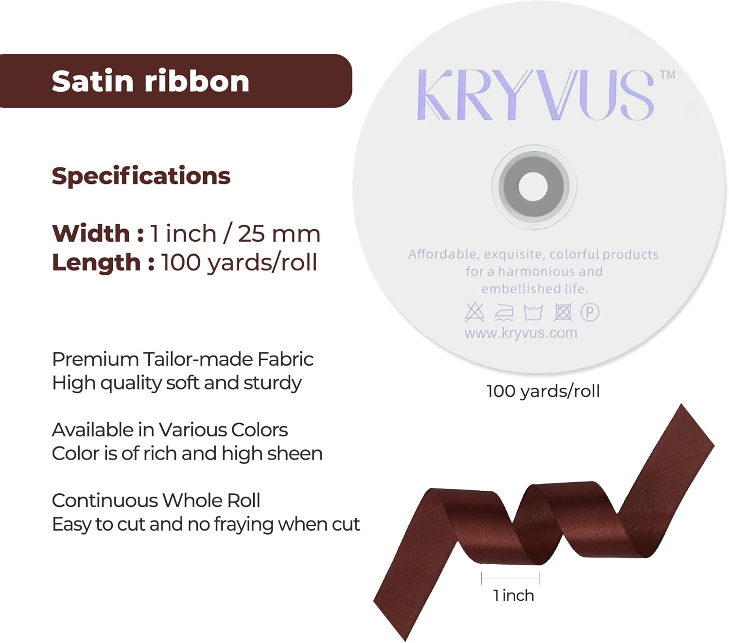 Coffee Brown Satin Ribbon 1 inch X Continuous 100 Yards, Single Face Polyester Ribbon Perfect for Gift Wrapping, Flower Bouquet, Wedding Decor, Crafts, Bow Making, Sewing and More