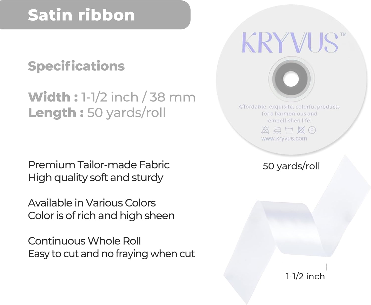 White Satin Ribbon 1-1/2 inch X Continuous 50 Yards, Single Face Polyester Ribbon Perfect for Gift Wrapping, Flower Bouquet, Wedding Decor, Crafts, Bow Making, Sewing and More
