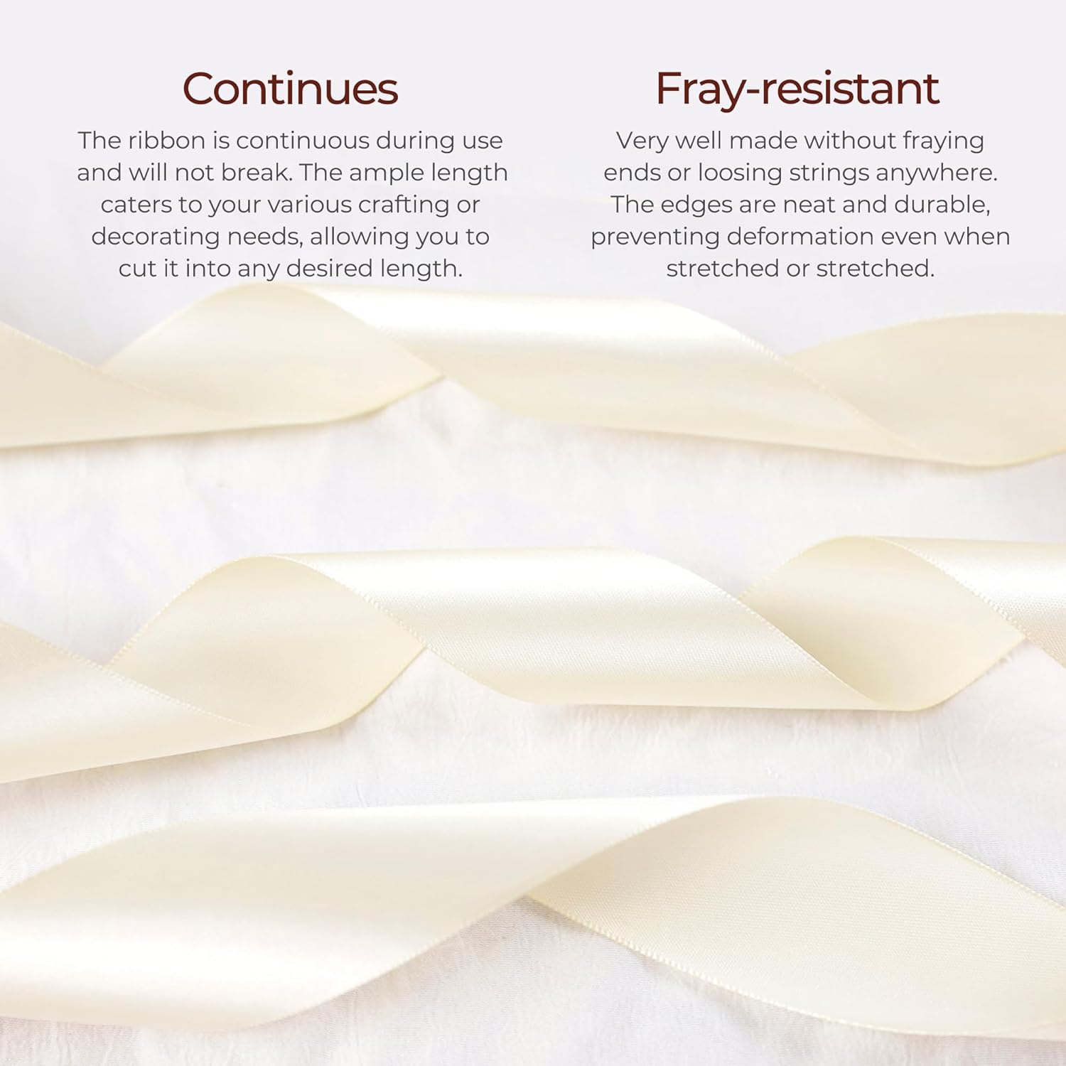- Premium Material: Our beige satin ribbon is crafted from premium 100% polyester satin fabric, known for its exceptional durability, smooth texture, and vibrant color; The high-quality polyester satin material ensures that the ribbon is wrinkle-free, easy to handle, and maintains its luster even after repeated use. This ribbon is designed to be tear-resistant and colorfast, making it ideal for a wide range of crafting applications