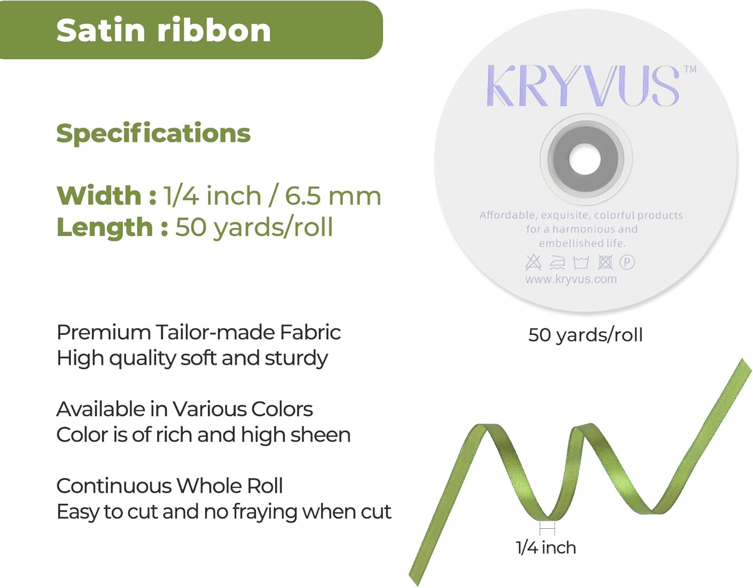 - Premium Material: Our olive green satin ribbon is crafted from premium 100% polyester satin fabric, known for its exceptional durability, smooth texture, and vibrant color; The high-quality polyester satin material ensures that the ribbon is wrinkle-free, easy to handle, and maintains its luster even after repeated use. This ribbon is designed to be tear-resistant and colorfast, making it ideal for a wide range of crafting applications
