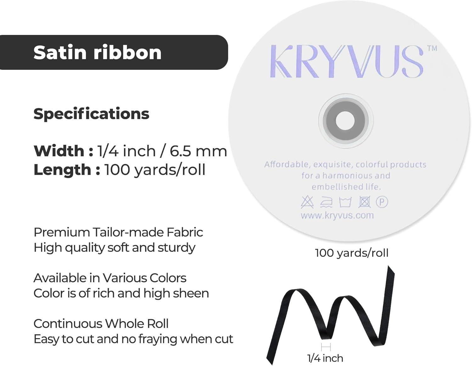 - Premium Material: Our black satin ribbon is crafted from premium 100% polyester satin fabric, known for its exceptional durability, smooth texture, and vibrant color; The high-quality polyester satin material ensures that the ribbon is wrinkle-free, easy to handle, and maintains its luster even after repeated use. This ribbon is designed to be tear-resistant and colorfast, making it ideal for a wide range of crafting applications