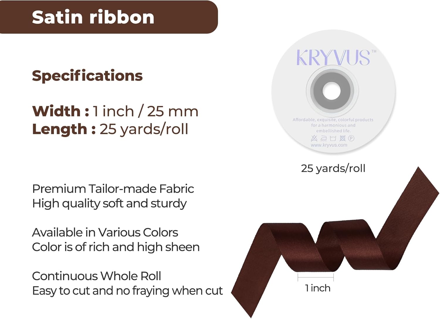 Dark Brown Satin Ribbon 1 inch X Continuous 25 Yards, Single Face Polyester Ribbon Perfect for Gift Wrapping, Flower Bouquet, Wedding Decor, Crafts, Bow Making, Sewing and More