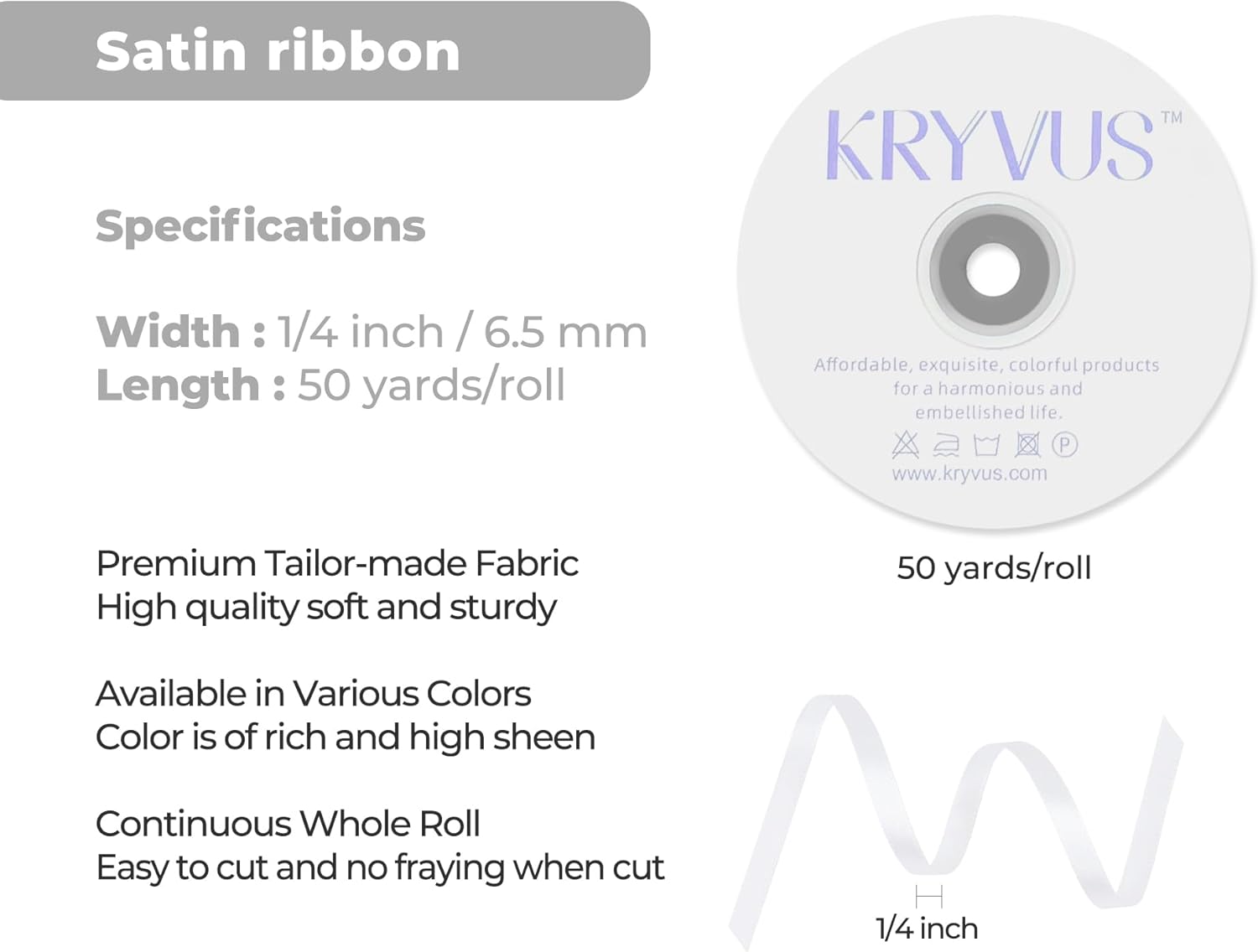 White Satin Ribbon 1/4 inch X Continuous 50 Yards, Single Face Polyester Ribbon Perfect for Gift Wrapping, Flower Bouquet, Wedding Decor, Crafts, Bow Making, Sewing and More