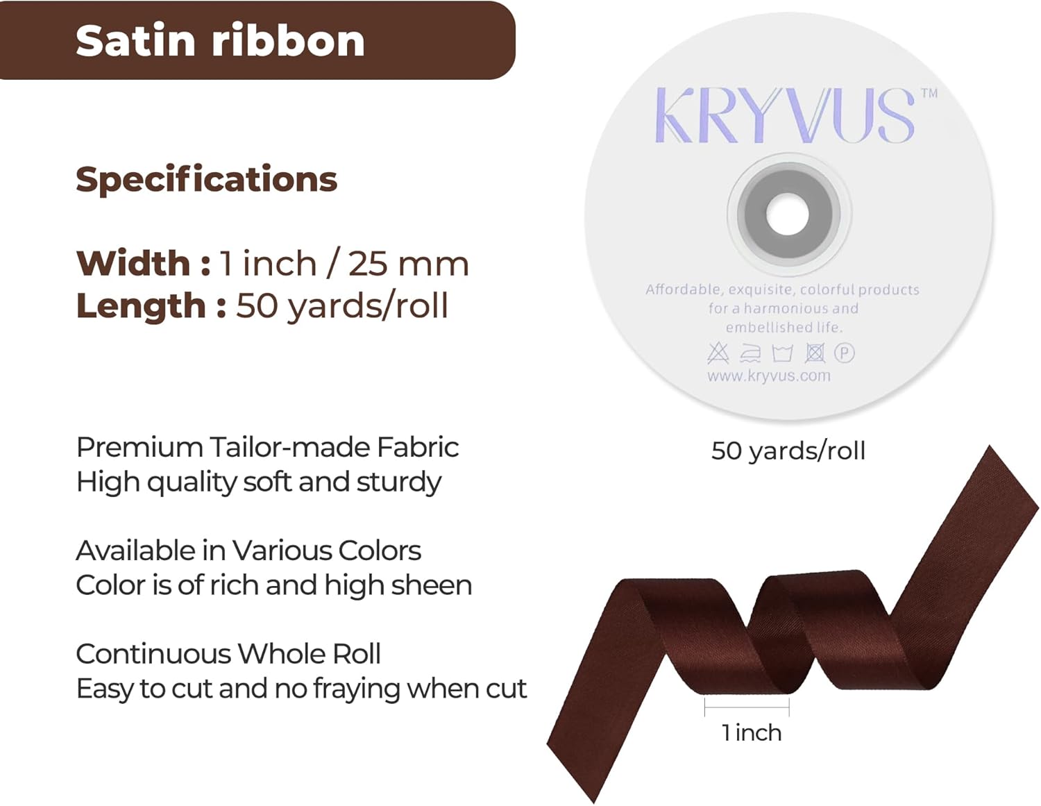 Dark Brown Satin Ribbon 1 inch X Continuous 50 Yards, Single Face Polyester Ribbon Perfect for Gift Wrapping, Flower Bouquet, Wedding Decor, Crafts, Bow Making, Sewing and More