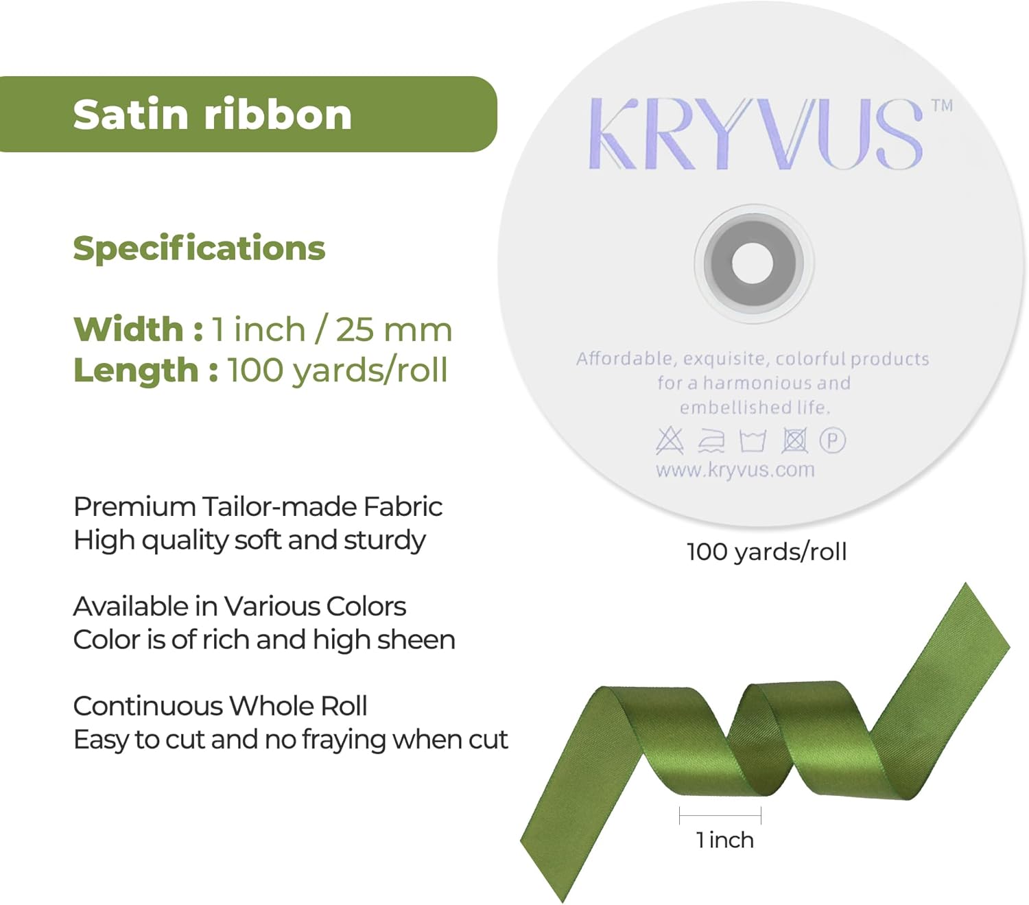 Olive Green Satin Ribbon 1 inch X Continuous 100 Yards, Single Face Polyester Ribbon Perfect for Gift Wrapping, Flower Bouquet, Wedding Decor, Crafts, Bow Making, Sewing and More