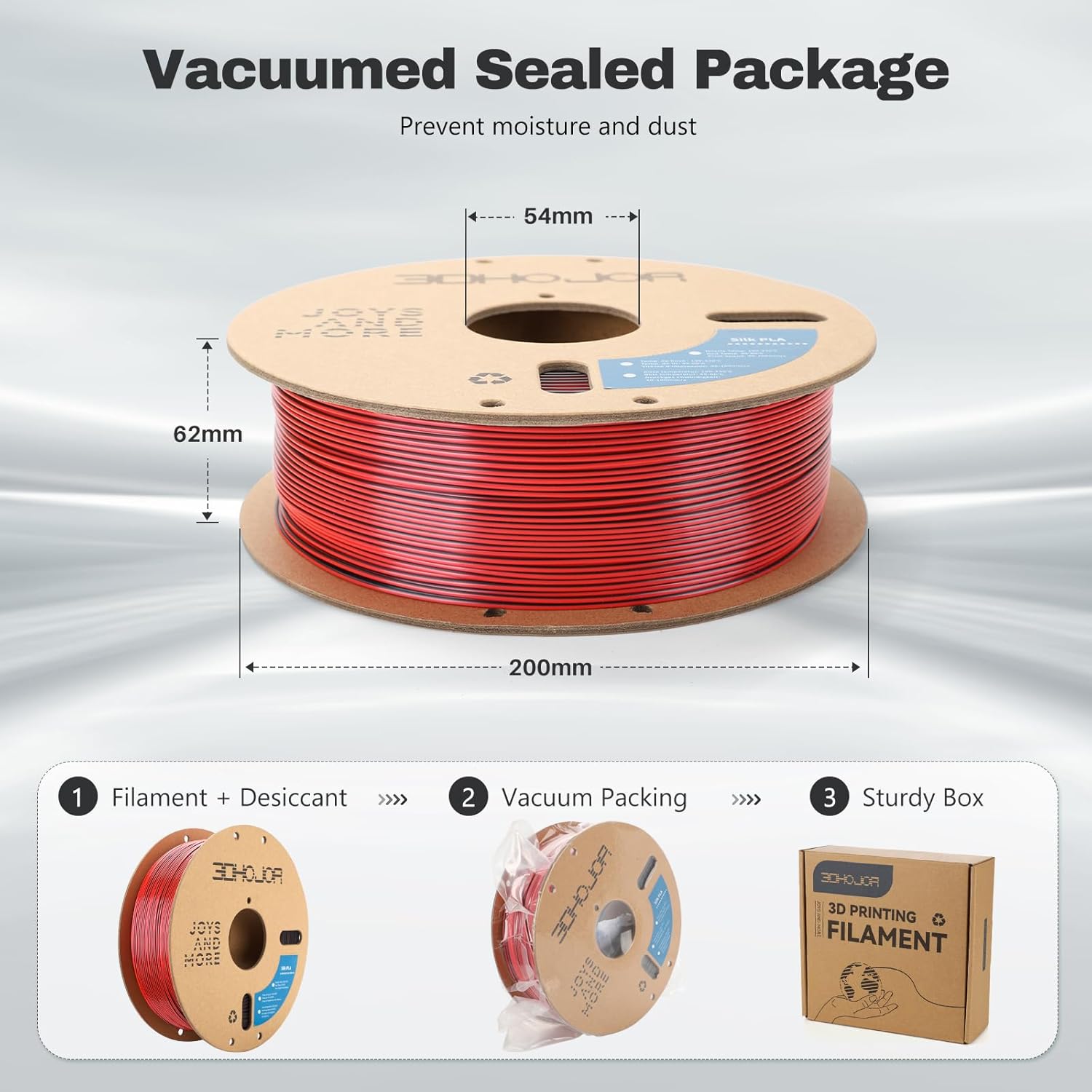 - 【Silk Triple Color PLA】You can get a gorgeous 3D printing surface. Shiny Black Red Gold combination of magic 1.75mm PLA filament, make different sides of your print appear in different colors. Every inch has has three colors. This gives your prints not only a smooth and shinny appearance, but also a unique color pattern and effect.