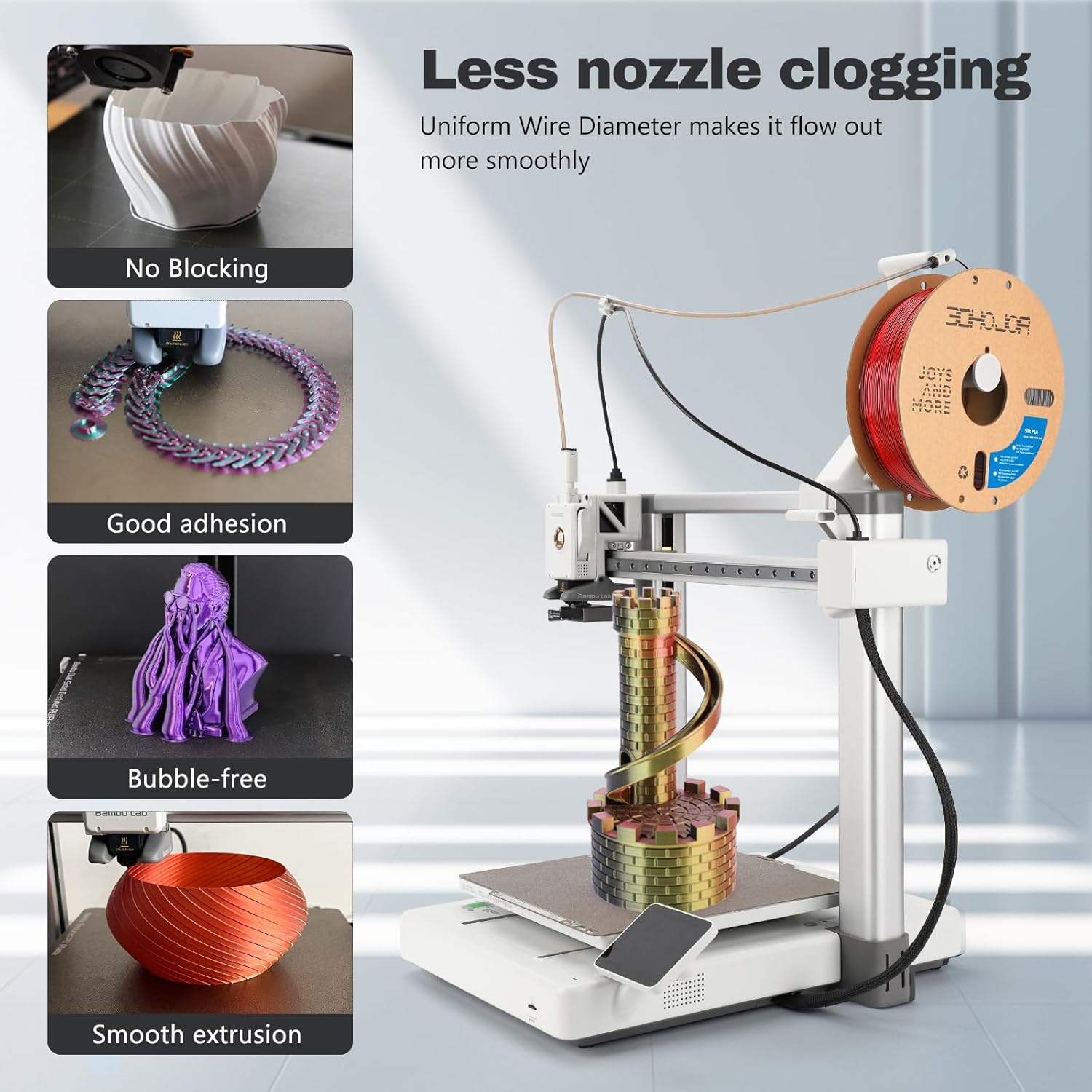 - 【Tangle-Free, Neatly Wound】: more resilient than traditional PLA, not easy to damage. Strict manual inspection ensures the neatness and easy feed of PLA filament winding. Vacuum-sealing guarantees moisture-free printing, eliminating clogs and bubbles, which increase your printing success rate.