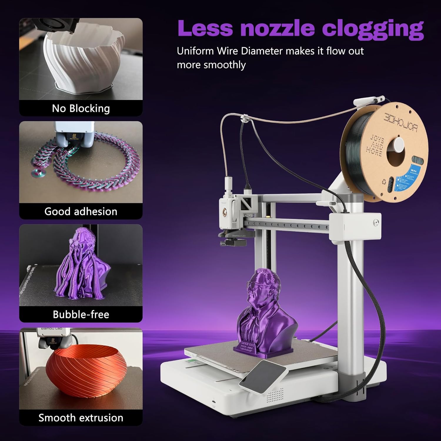 - 【Tangle-Free, Neatly Wound】: more resilient than traditional PLA, not easy to damage. Strict manual inspection ensures the neatness and easy feed of PLA filament winding. Vacuum-sealing guarantees moisture-free printing, eliminating clogs and bubbles, which increase your printing success rate.