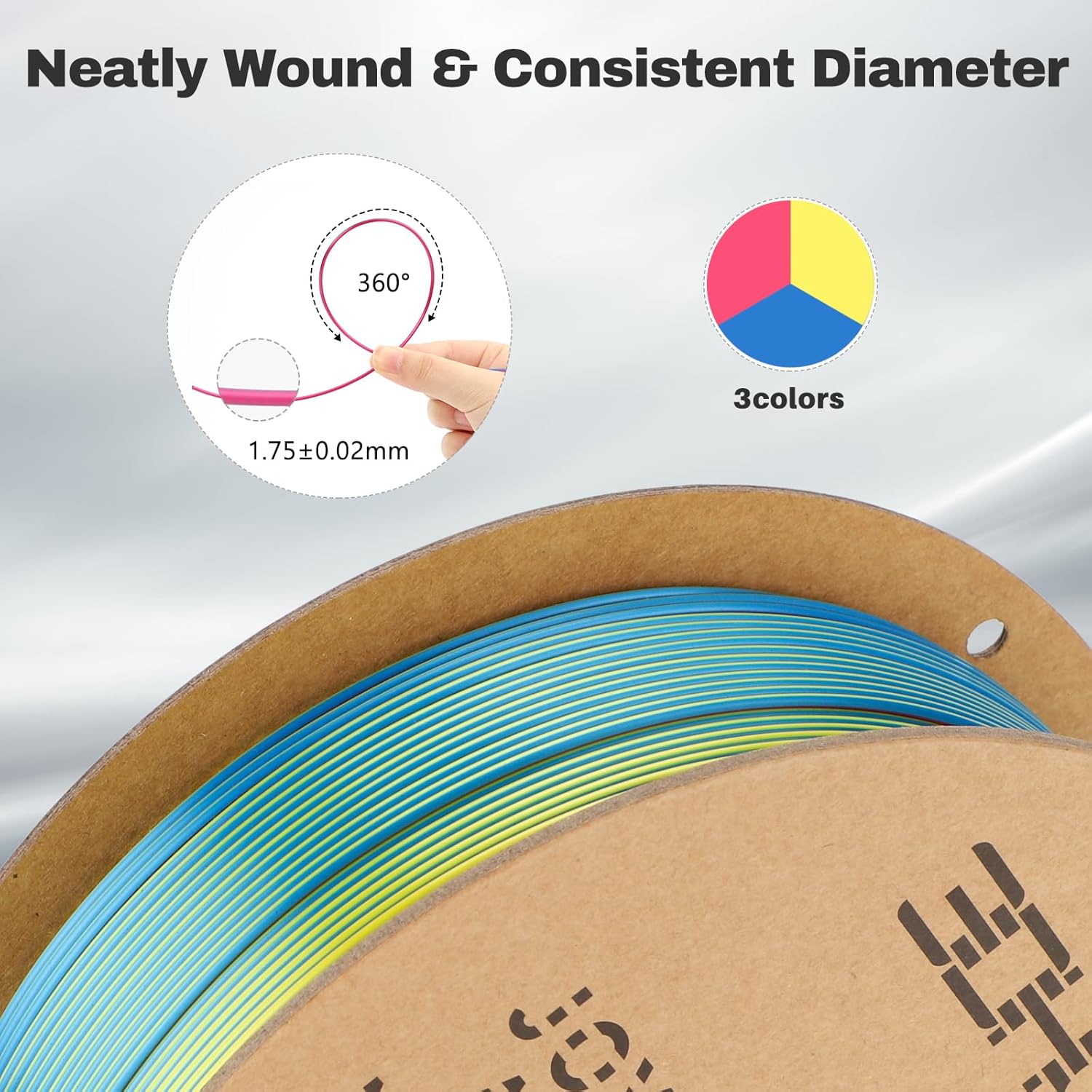 - 【Tangle-Free, Neatly Wound】: more resilient than traditional PLA, not easy to damage. Strict manual inspection ensures the neatness and easy feed of PLA filament winding. Vacuum-sealing guarantees moisture-free printing, eliminating clogs and bubbles, which increase your printing success rate.