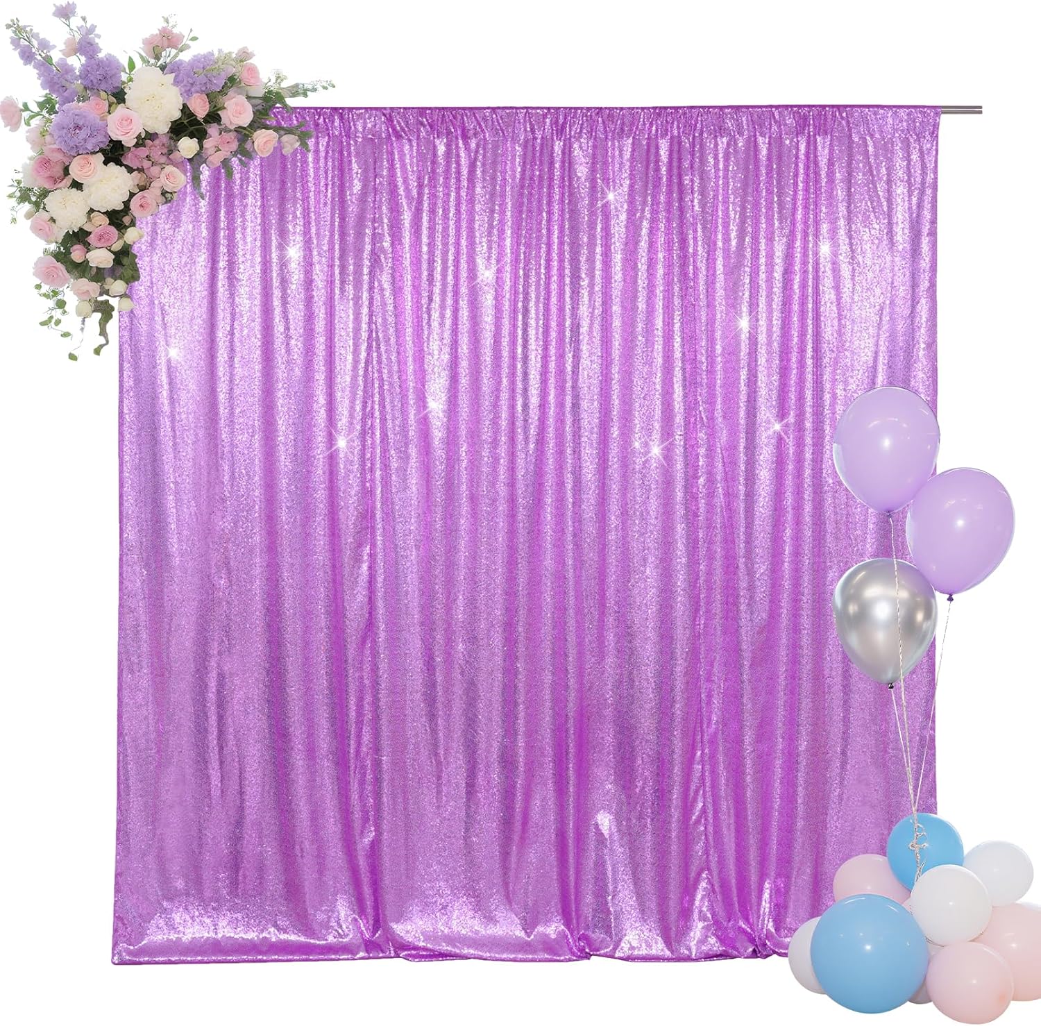 SquarePie Sequin Backdrop Less Transparent Background Sparkly Curtain for Wedding Party 6FT x 8FT Lavender