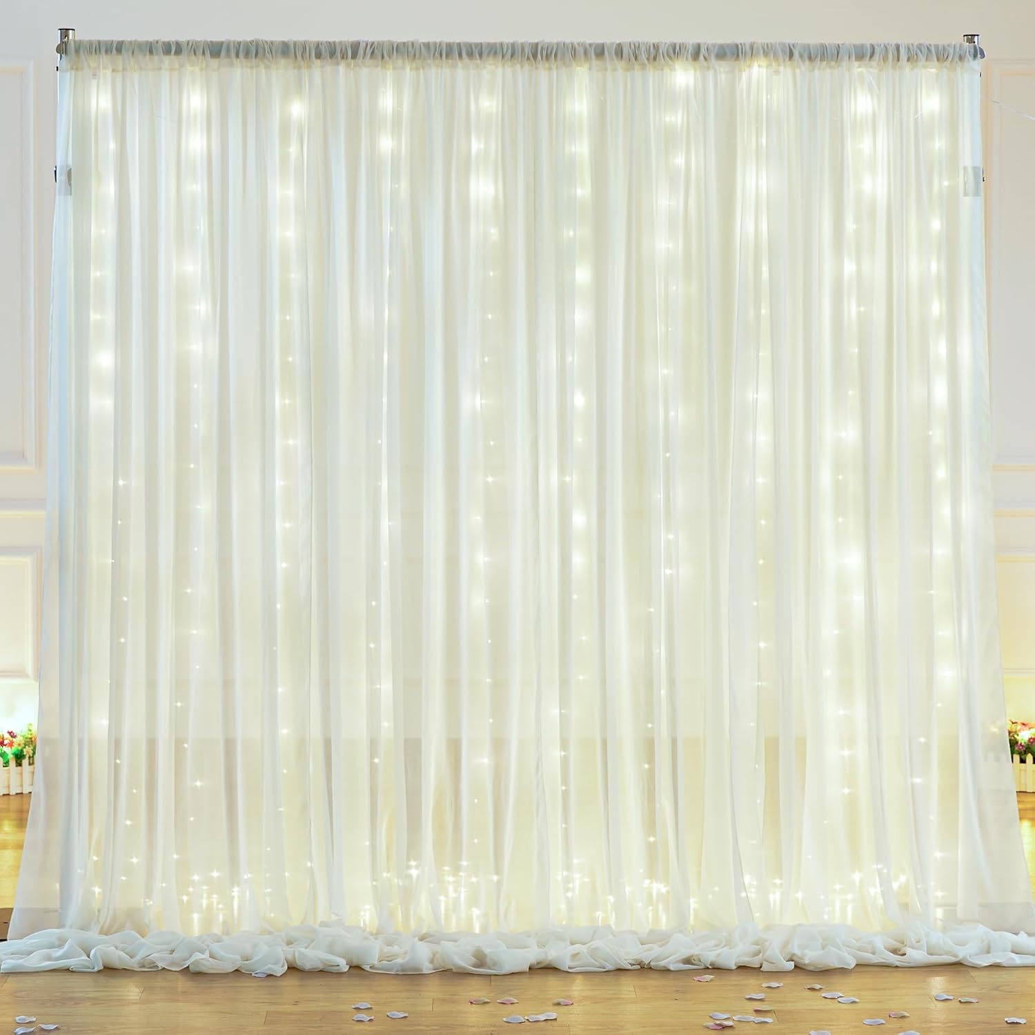 - 【Reusable & Versatile Light Curtain Backdrop】 The ivory white wedding backdrop curtain and lights are separated, so it is both hand and machine washable, then left to dry naturally. With a soft and dreamy aesthetic, the ivory white sheer curtains with lights can be reused as event decor, lights up curtains, photo booth or a reunion, or simply to add a touch of elegance to your home or parties.