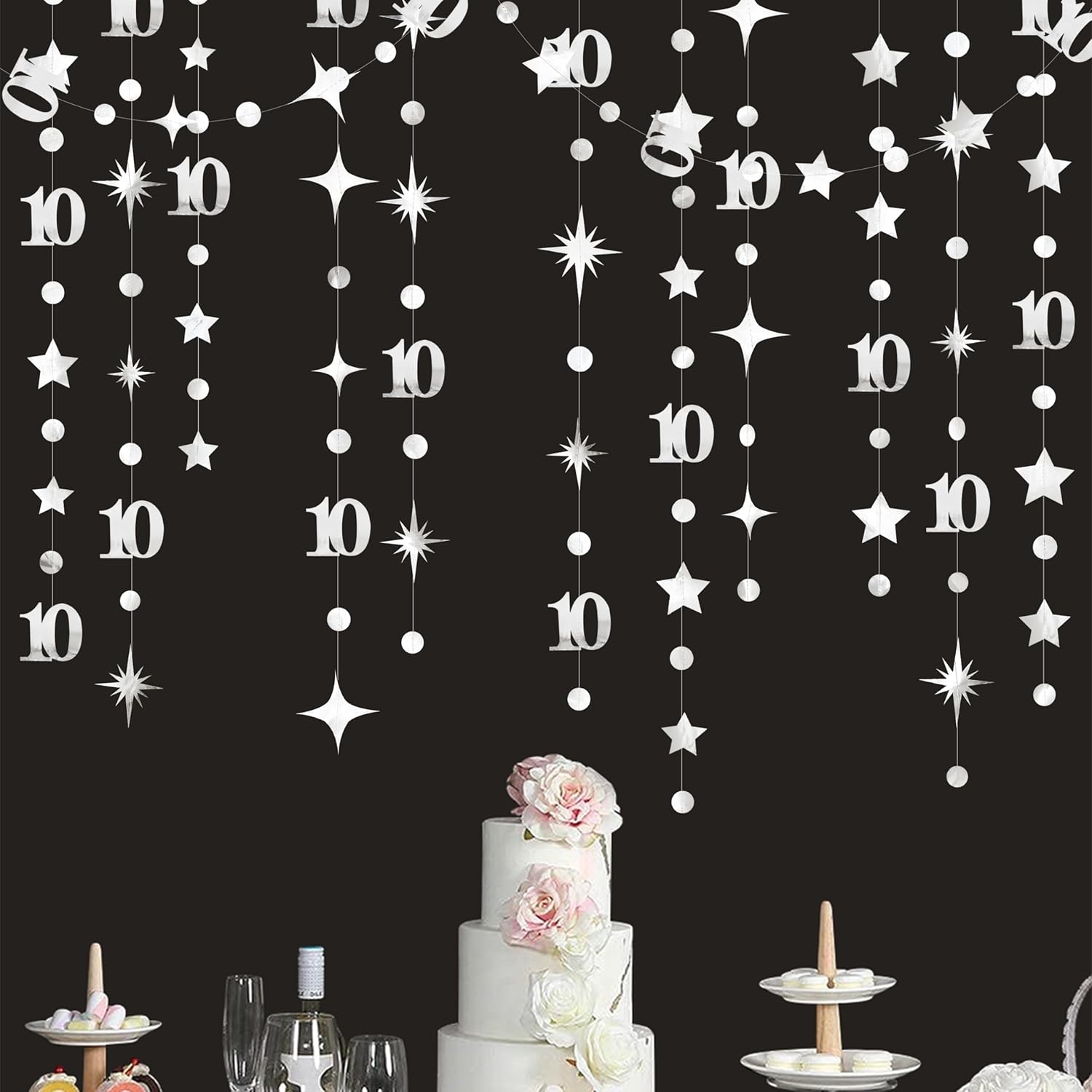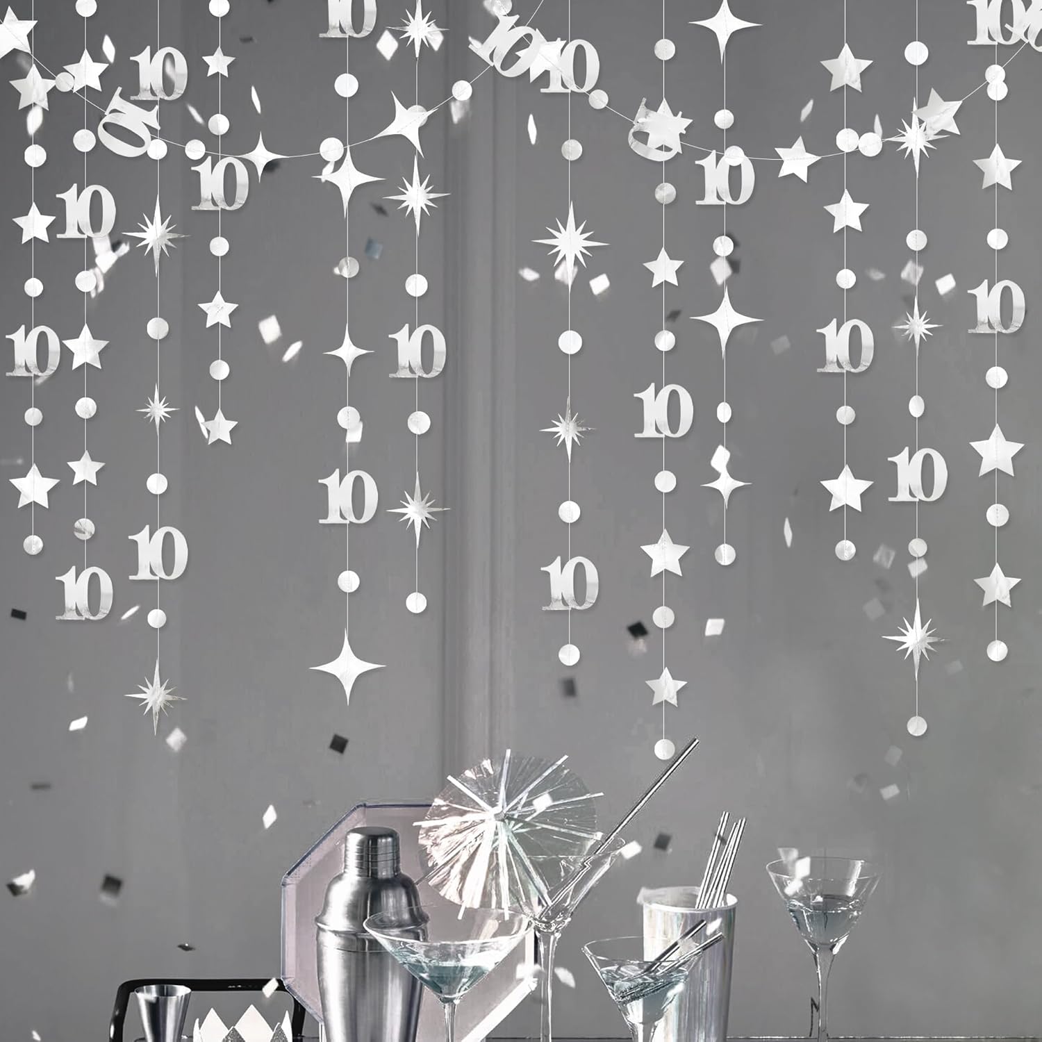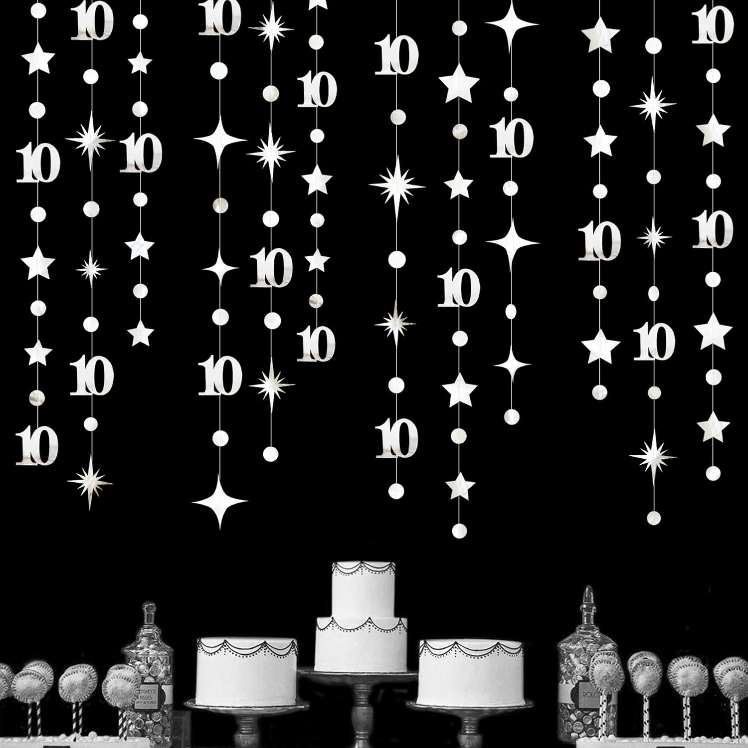 - 👍 Adorable party décor- our silver number 10 circle dot twinkle star garland kit is perfct for girls/boys 10th birthday party, 10 year old birthday decorations, 10 birthday decorations for girls, 10 birthday decorations for boys, double digits party, 10th anniversary, happy 10th birthday decorations,wedding, bridal shower, birthday, Christmas, barbecue, home, engagement, christenings, fetes, etc