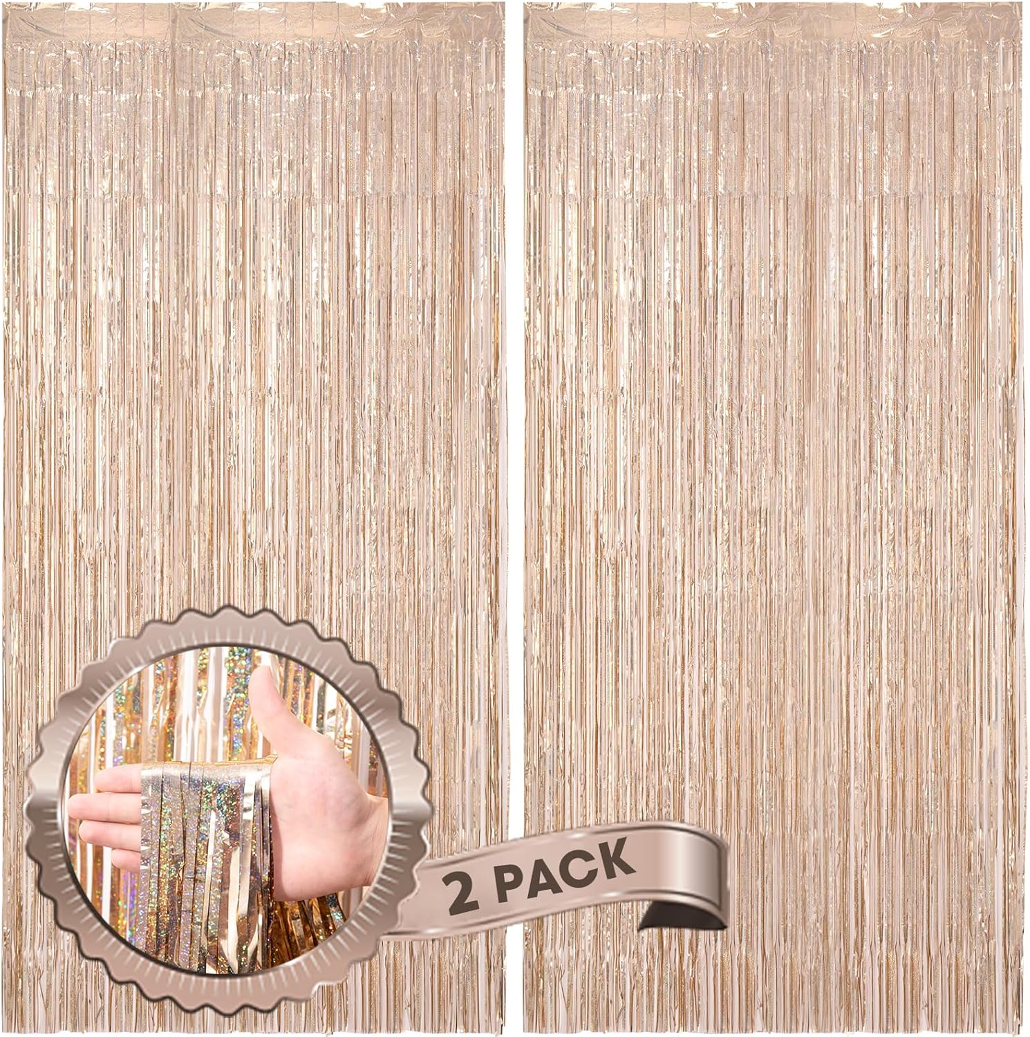 2 Pack Laser Champagne Foil Fringe Backdrop Curtains, Tinsel Streamers Birthday Party Decorations, Fringe Backdrop for Graduation, Baby Shower, Gender Reveal, Disco Party
