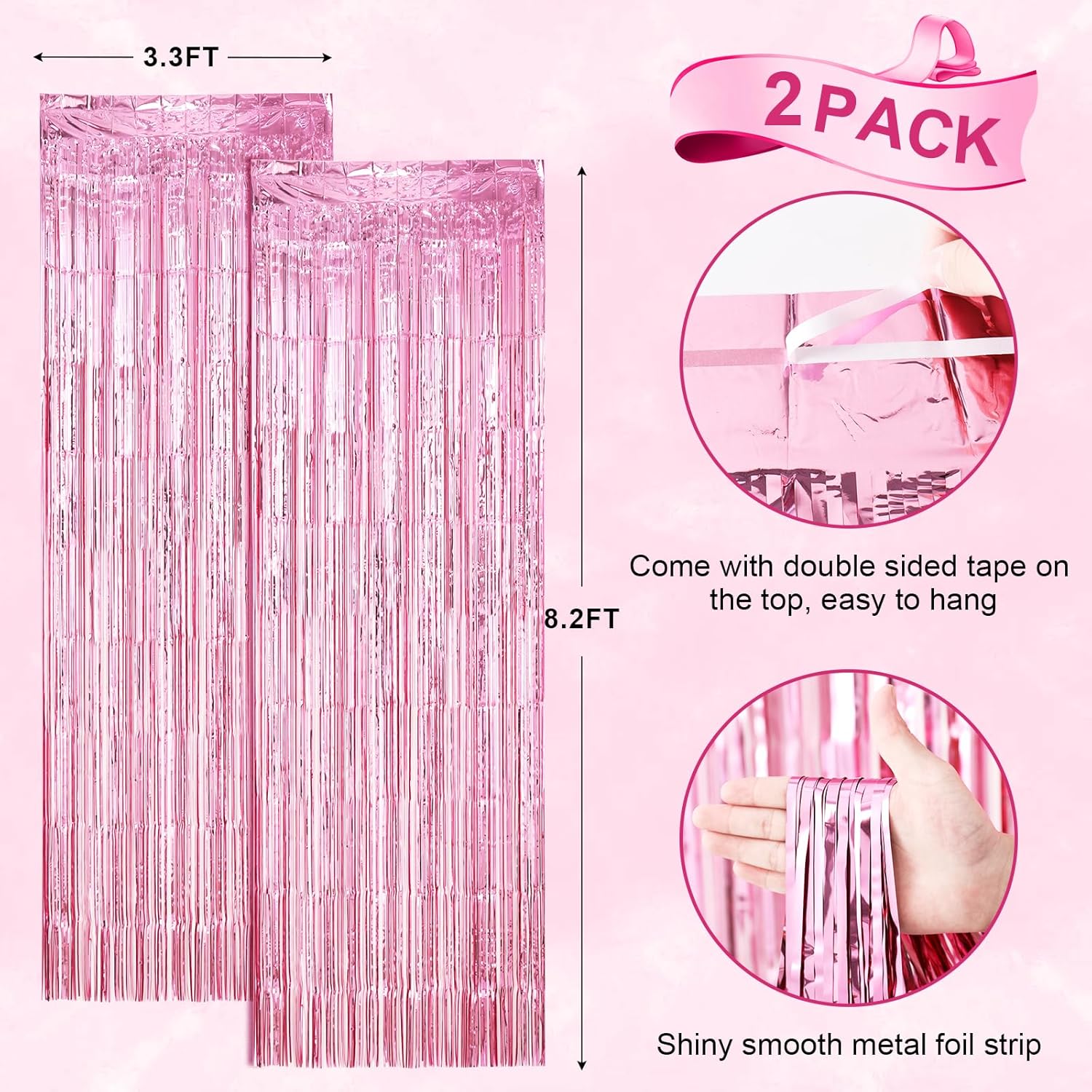 - Premium Material: This Light Pink foil curtain backdrop is made of stable tinsel, non-fading, stay shiny and reusable. Unfold it and then enjoy your glittering party