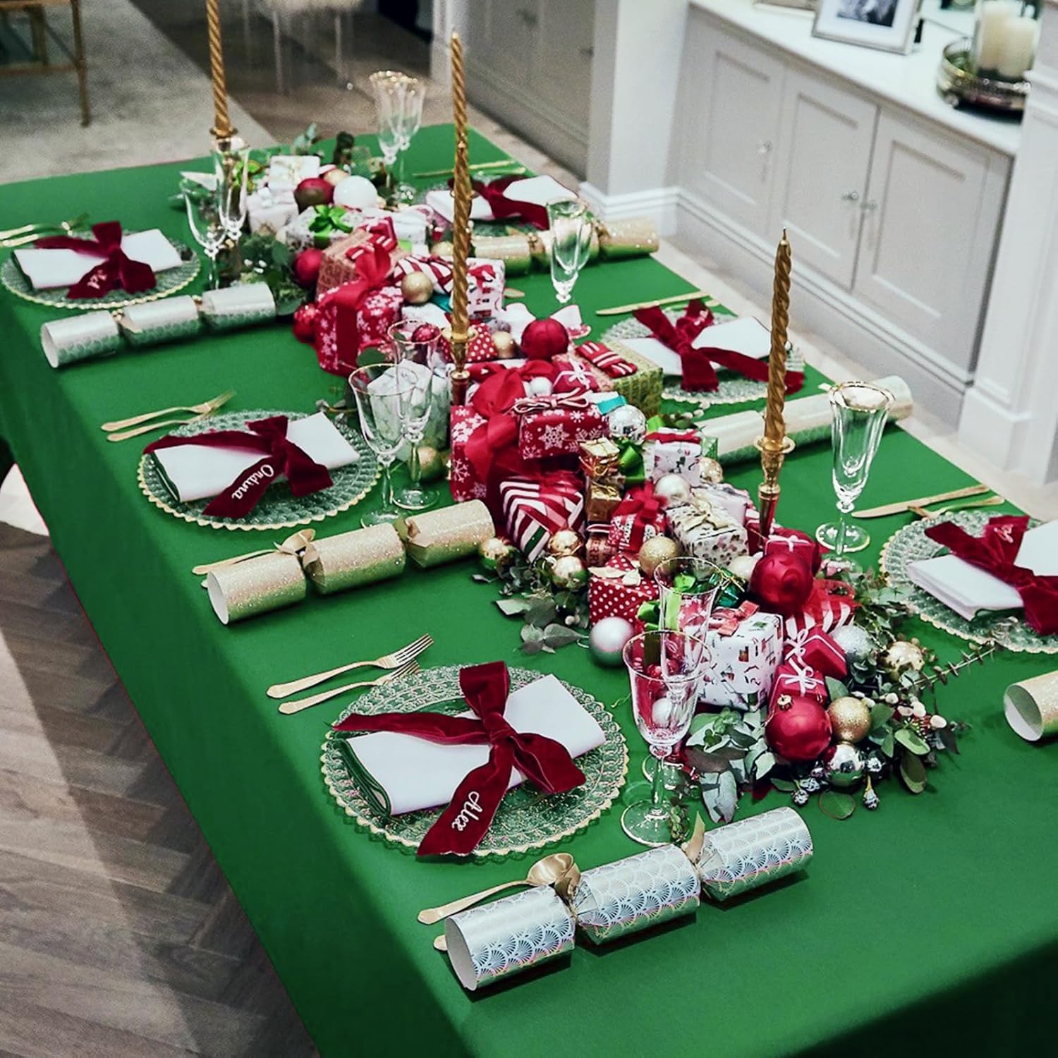 - đ„ăPerfect sizeăThis Green table cloth is 60x126 Inch, perfect for standard 8ft table, providing 15 inch drop. Please measure the size of your table before purchasing.Green table cover is more luxurious, classic and gracious, ideal for both formal & casual settings and makes a great gift for all occasions.