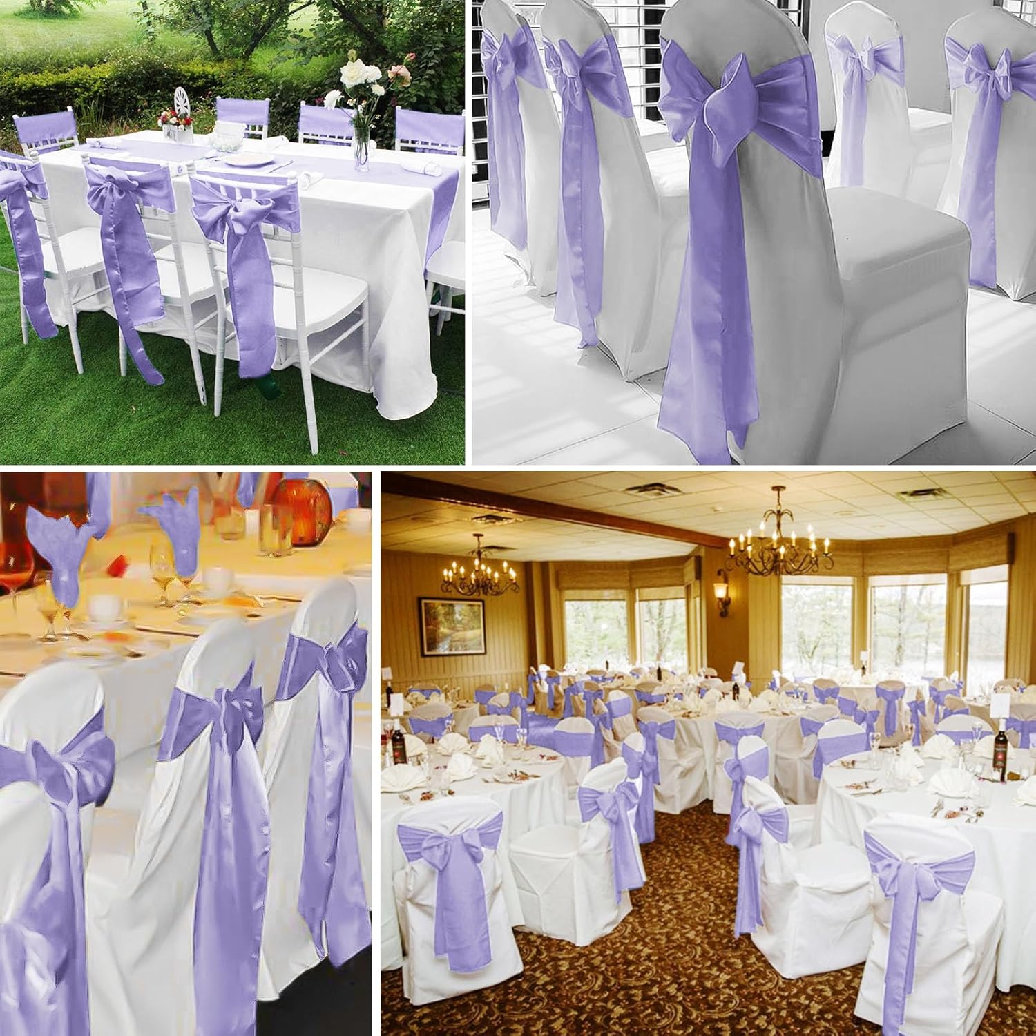 fani 120 PCS Lavender Purple Satin Chair Sashes Bows Universal Chair Cover for Wedding Reception Restaurant Event Decoration Banquet,Party,Hotel Event Decorations (7 x 108 inch)