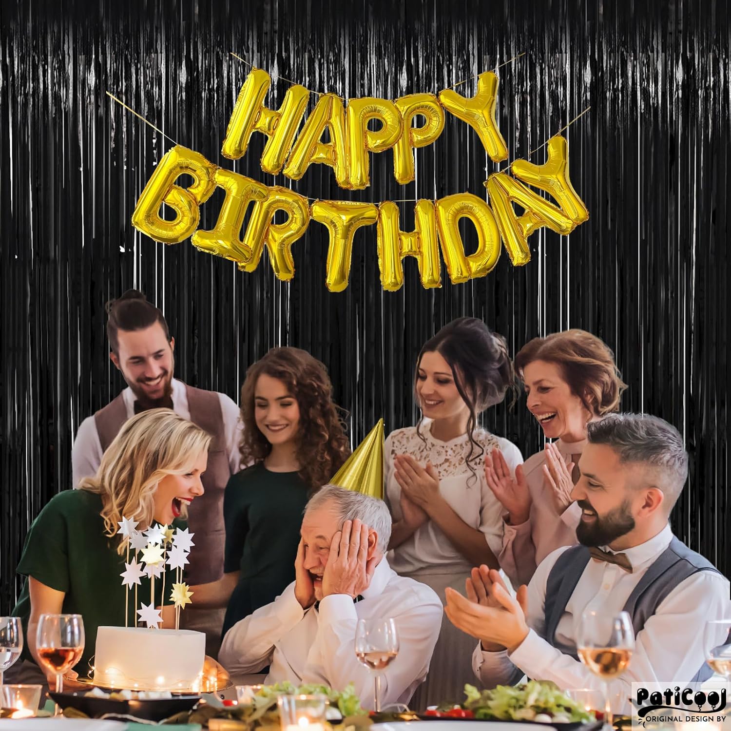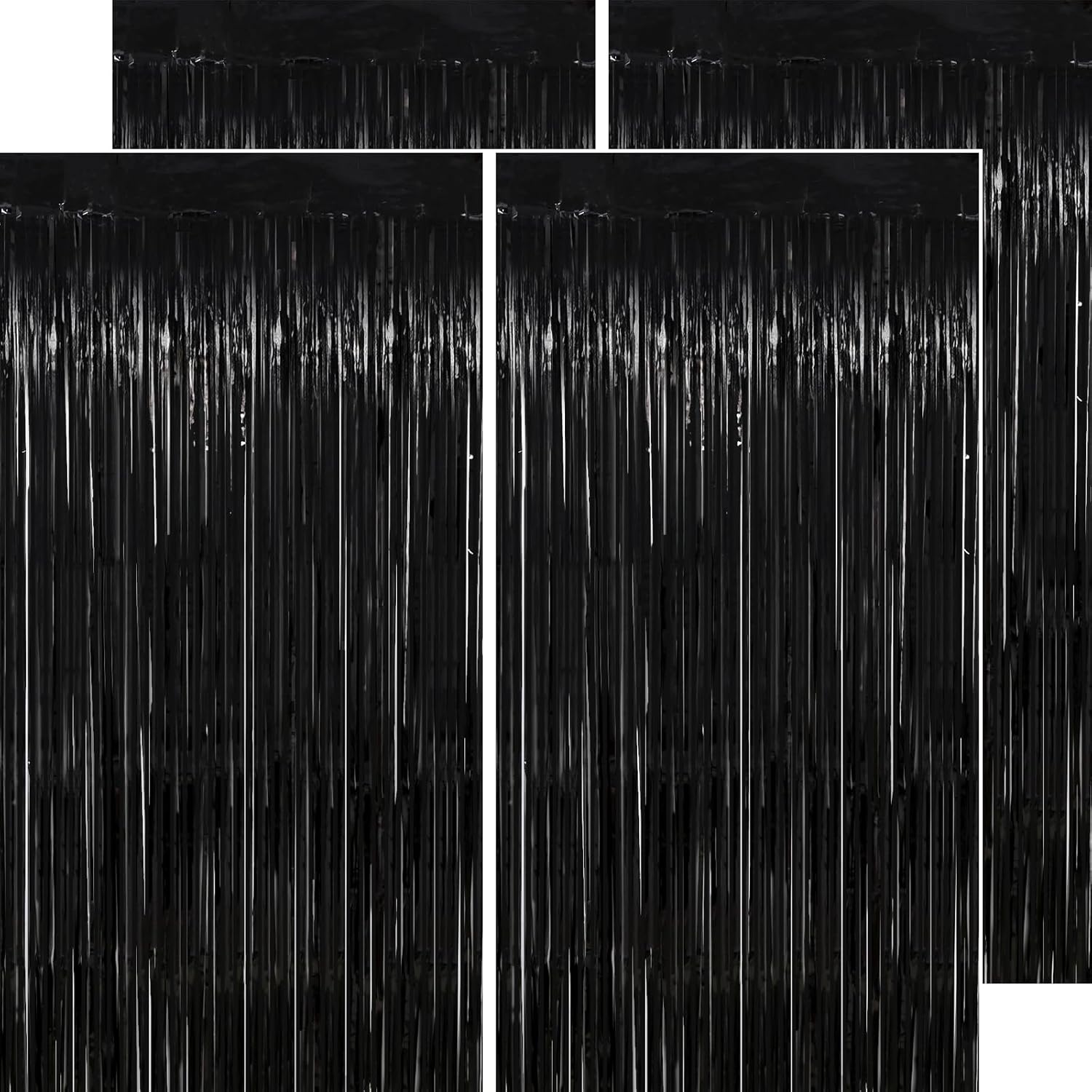 Halloween Decorations Black Streamers - Thicken 4 Pack 3.2 x 8.2 FT - Black Tinsel Foil Fringe Backdrop Curtains, Photo Booth Props for Birthday, Halloween, Retirement, Bachelor Party Decorations