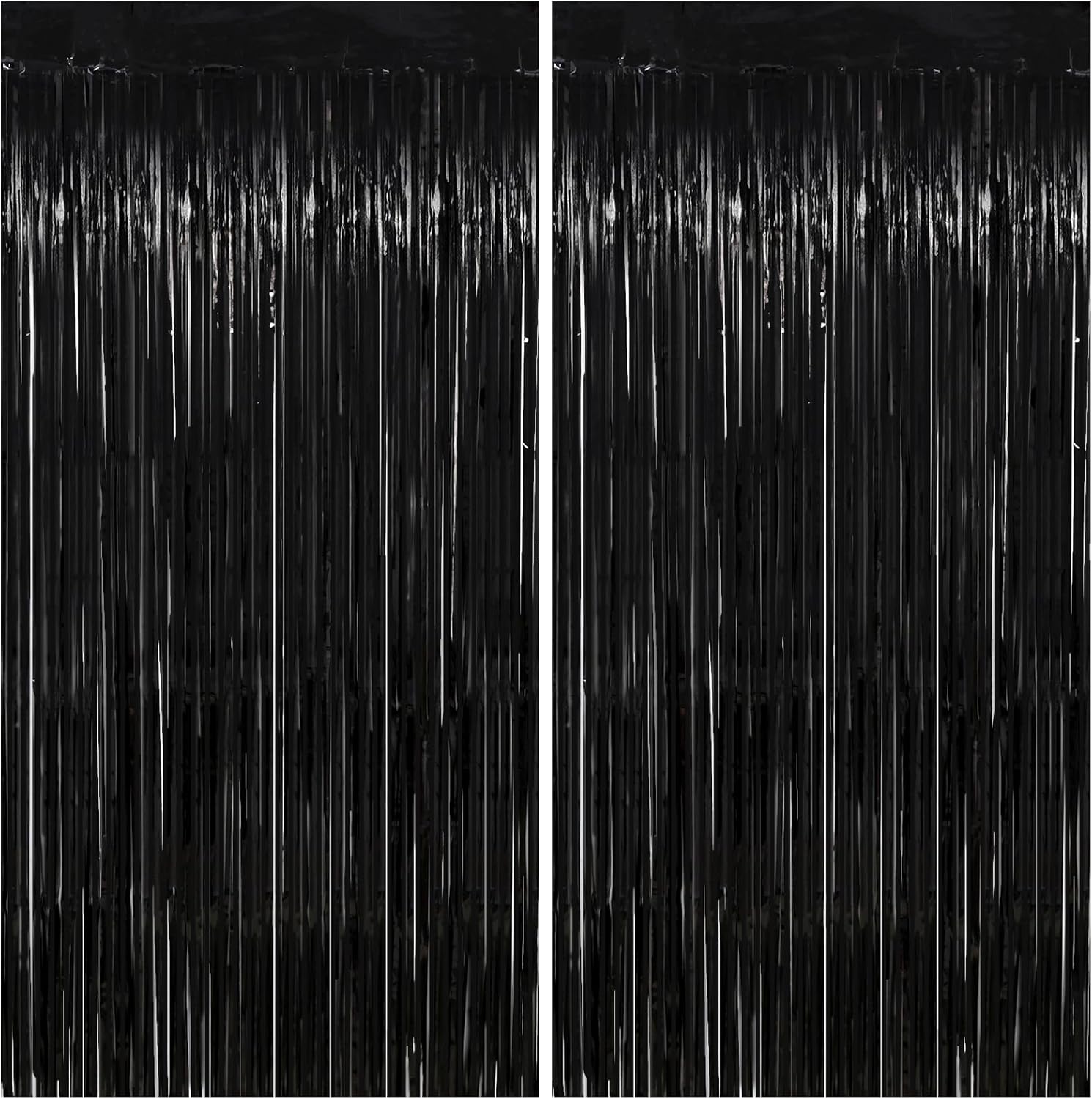 Black Streamers Party Decorations - Thicken 2 Pack 3.2 x 8.2 FT - Black Tinsel Foil Fringe Backdrop Curtains, Photo Booth Props for Birthday, Halloween, Retirement, Bachelor Party Decorations