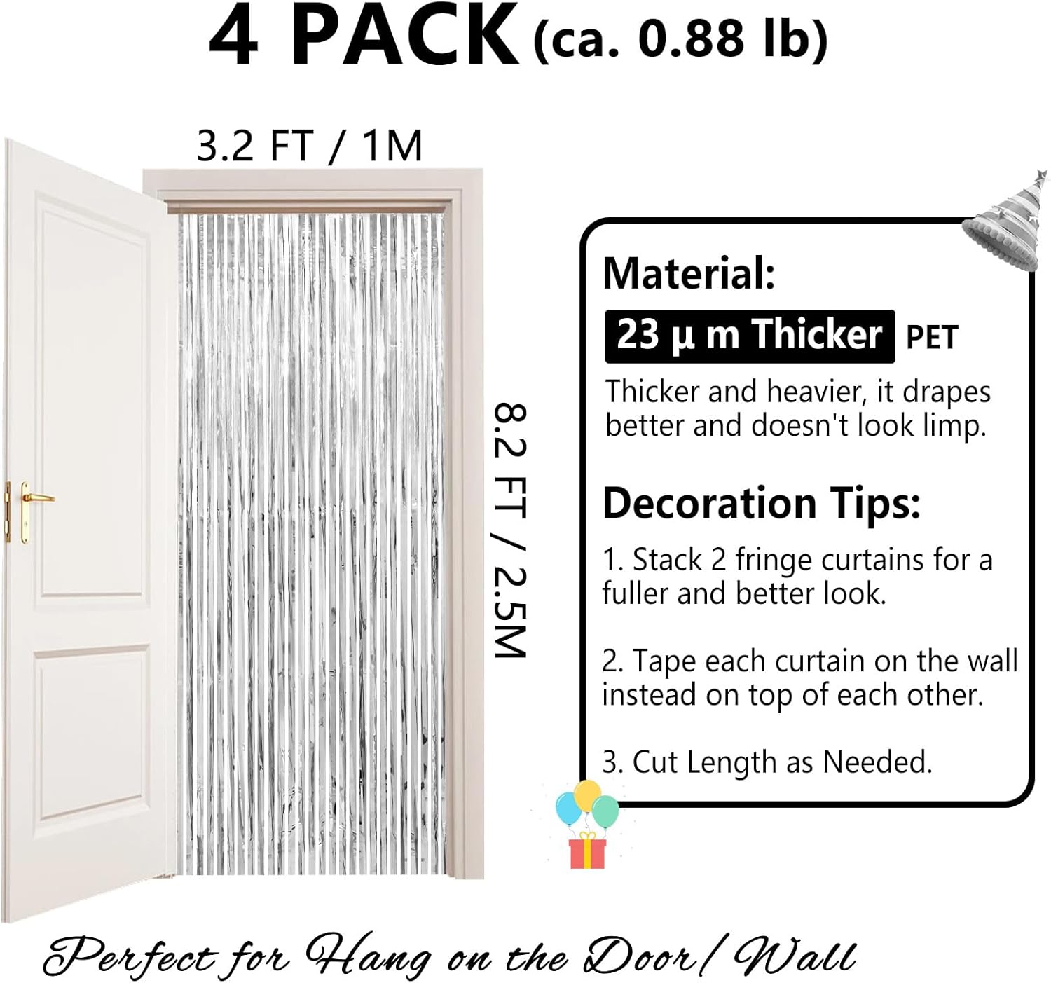 - π.π π± π.π π π | π ππππ - This silver metallic streamers are long enough to decorate doors or walls, you can freely adjust the length, width and thickness of them according to the desired scene. Paste them side by side for a wider range of decoration, stack 2 or more to achieve a thicker and denser effect.
